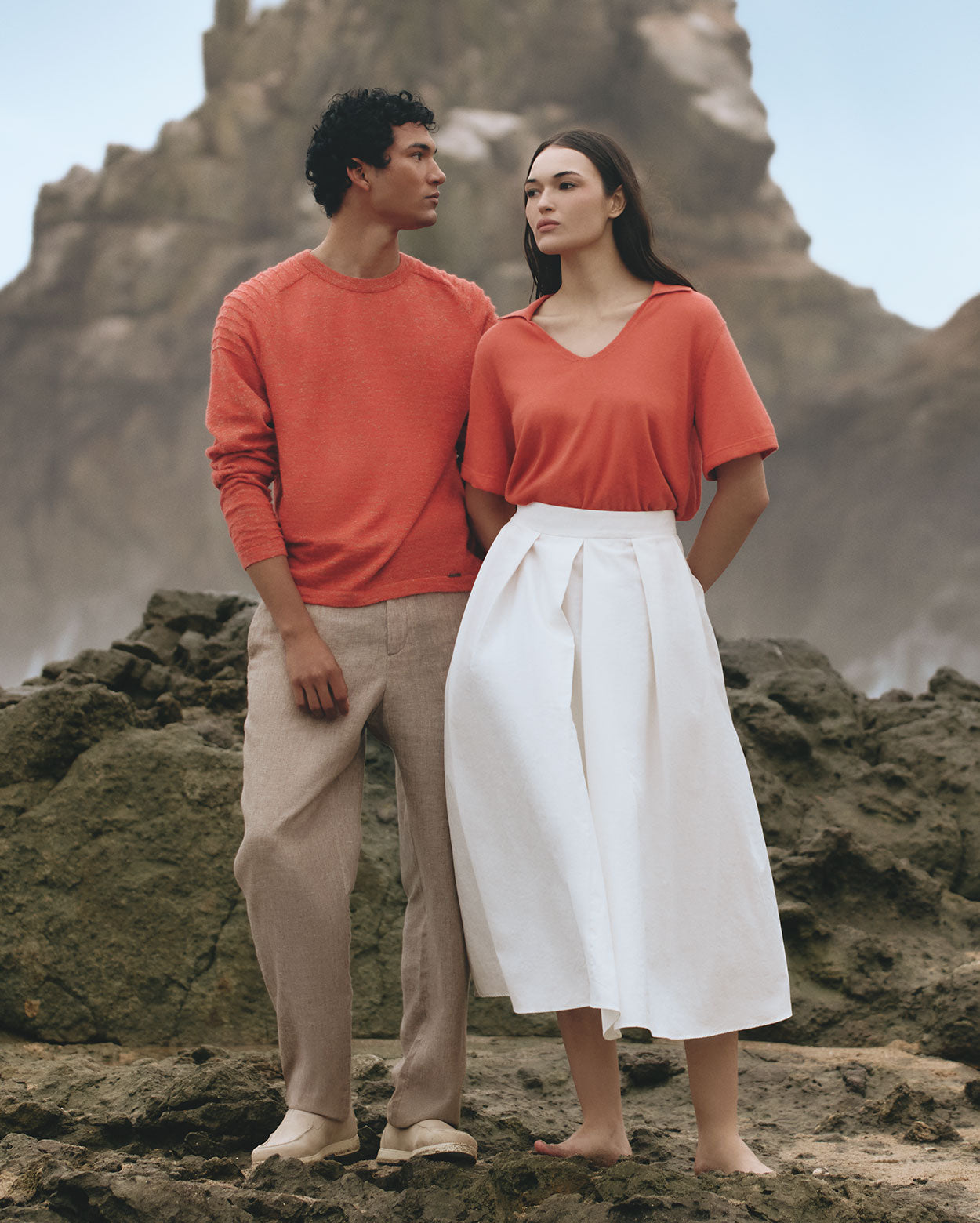 Inspirada en el vaivén del mar, reinterpreta la serenidad del ecosistema marino en piezas de movimiento sutil y natural.