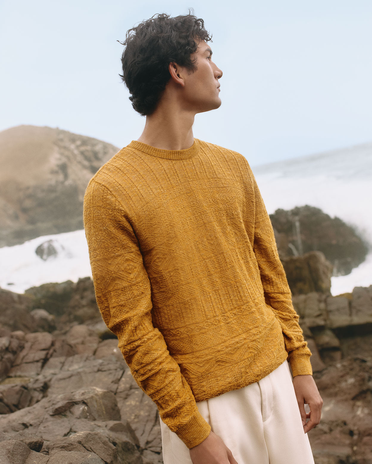 La colección masculina reúne sacos, abrigos y suéteres tejidos con fibras de alpaca seleccionadas. Diseños de corte preciso y carácter sobrio, pensados para el hombre que aprecia la calidad y la autenticidad en cada detalle.