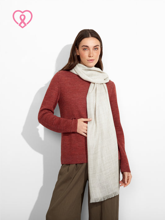 Estola Teaberry B en tonalidad gris, de color entero, presenta bordes con flecos finos que...