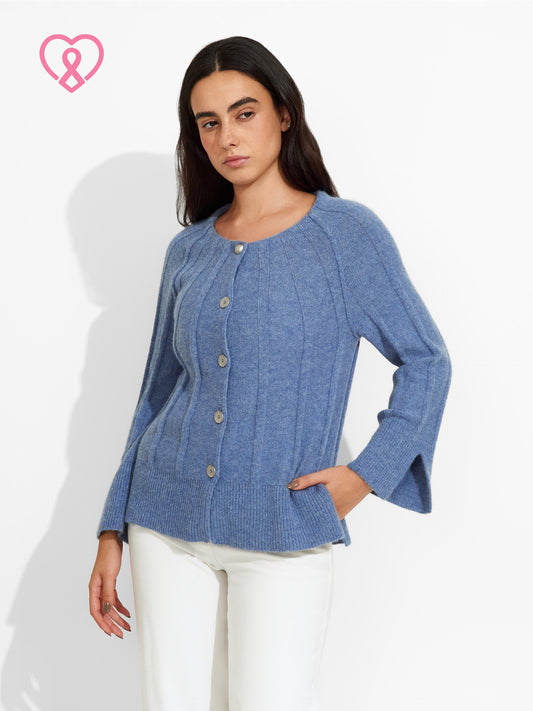 Cárdigan Zephir en tonalidad celeste, diseñado con cuello redondo y botones metálicos. Confeccionado en baby...
