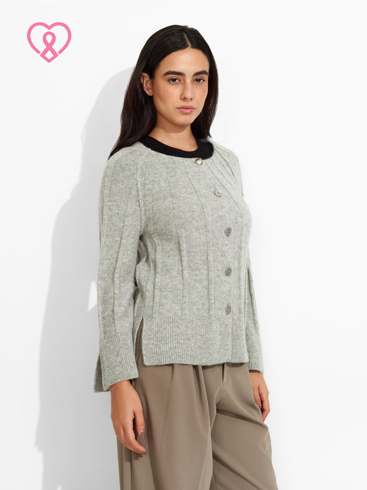 Cárdigan Zephir en tonalidad gris, diseñado con cuello redondo y botones metálicos. Confeccionado en baby...