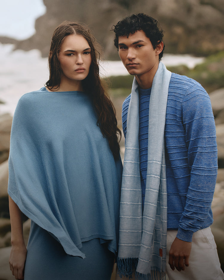 La colección masculina reúne sacos, abrigos y suéteres tejidos con fibras de alpaca seleccionadas. Diseños de corte preciso y carácter sobrio, pensados para el hombre que aprecia la calidad y la autenticidad en cada detalle.