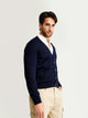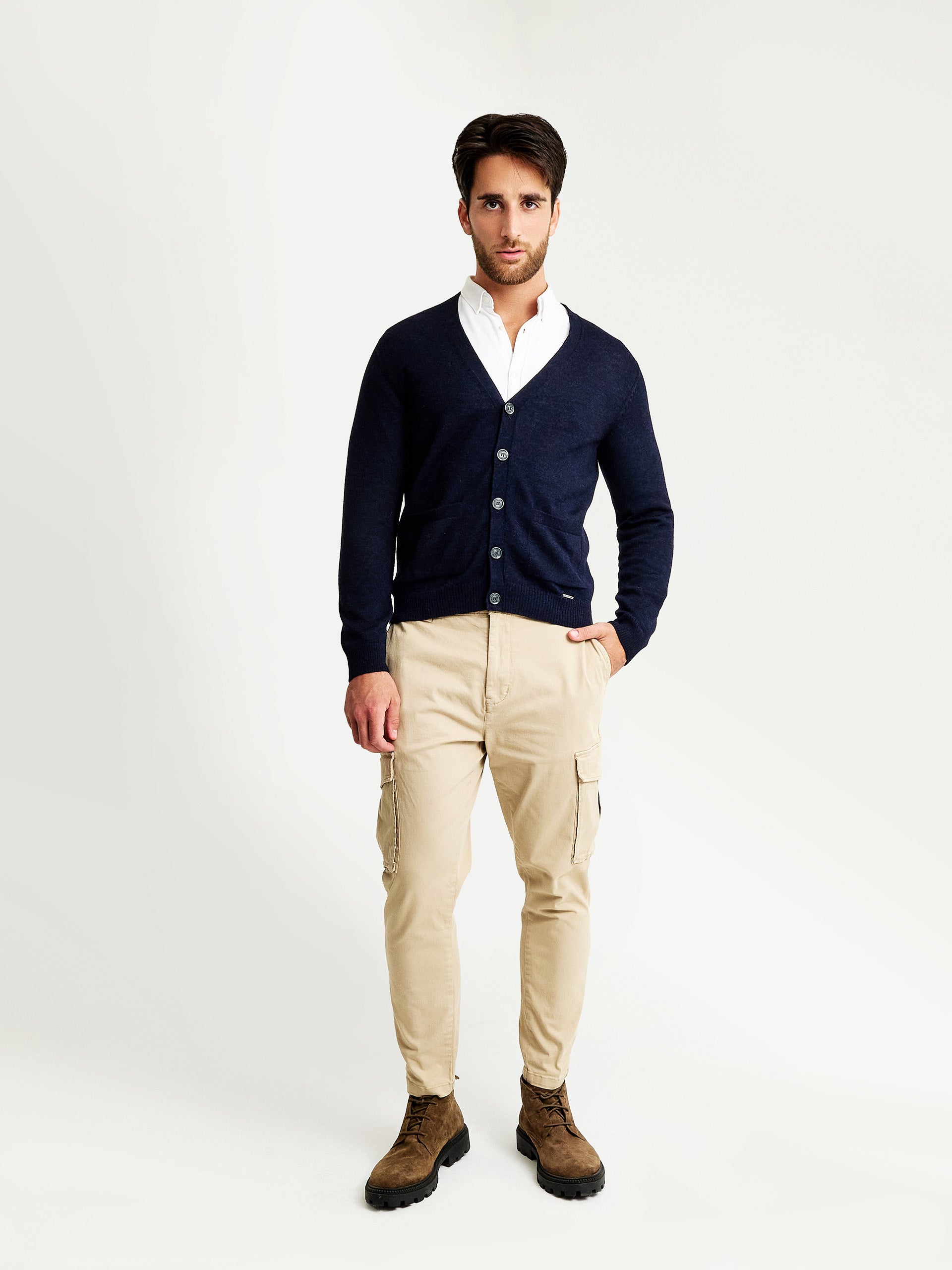 Disponible en dos combinaciones y hecho en delicada fibra de baby alpaca, con amplios bolsillos y botones centrales, nuestro cárdigan Antony se convierte en la prenda imprescindible para esta temporada. Elemento imprescindible del guardarropa masculino, combina las cualidades de este ligero tejido de corte clásico. | Material predominante: Baby Alpaca