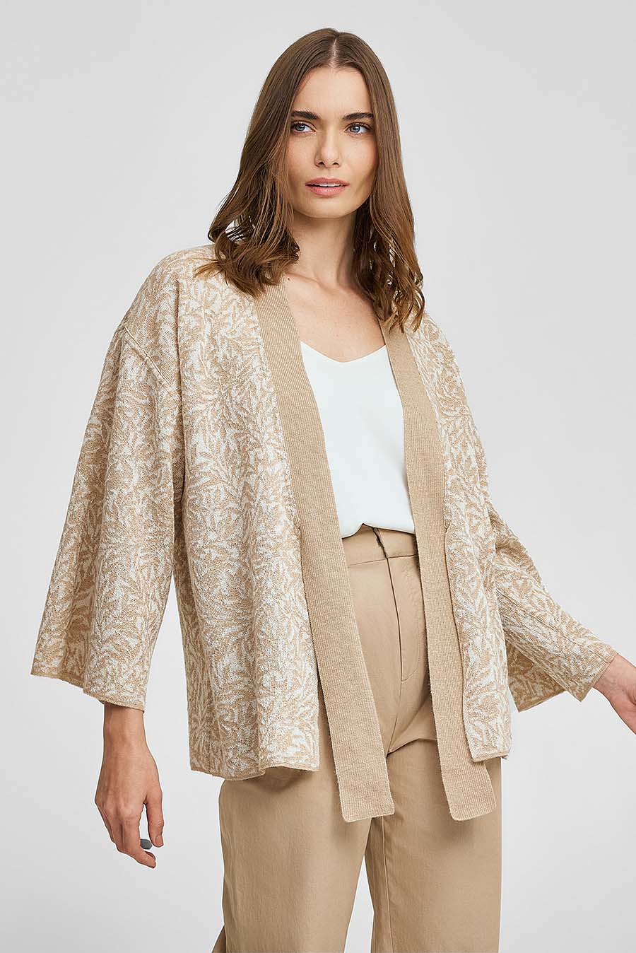 El cárdigan más especial hecho con las más suaves fibras de baby alpaca con seda. Es una prenda reversible, lo que la hace sumamente versátil y tiene un diseño inspirado en los distintos tipos de hojas. Nuestro cardigán Waikiki no puede faltar esta temporada en tu guardarropa. | Material predominante: Baby Alpaca