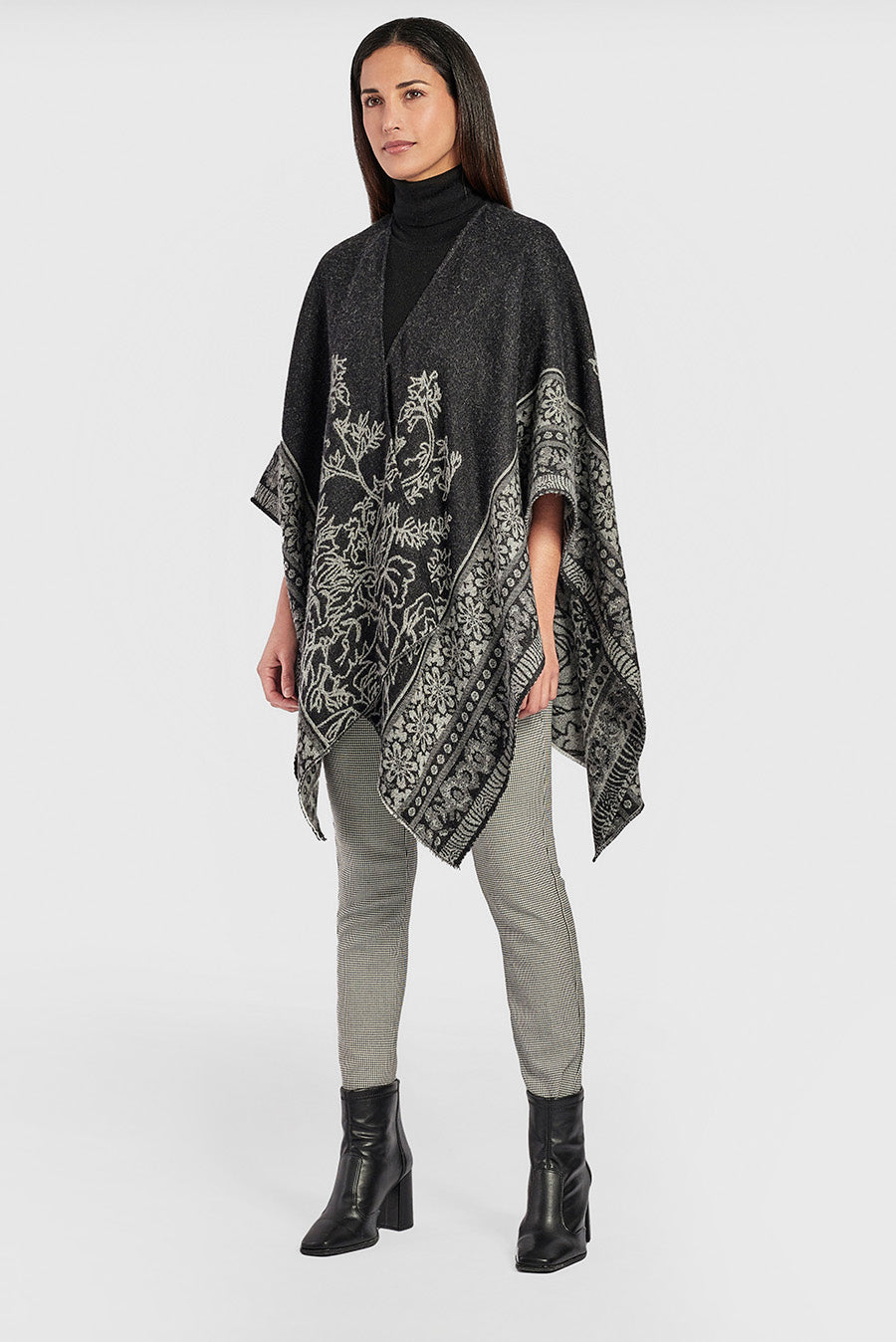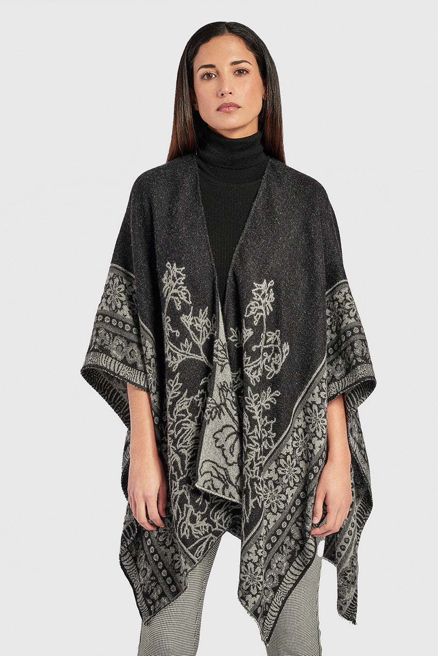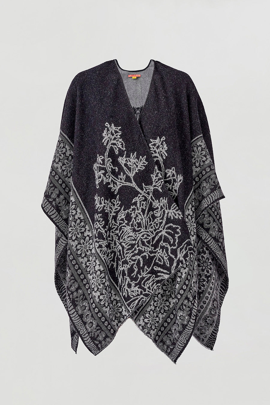 Suave, ligera y súper cálida. Esta capa confeccionada en 100% baby alpaca y con diseños de flores es la prenda adecuada para los días más fríos de invierno. Su corte amplio permite llevarla incluso encima de sacos y abrigos. | Material predominante: Baby Alpaca