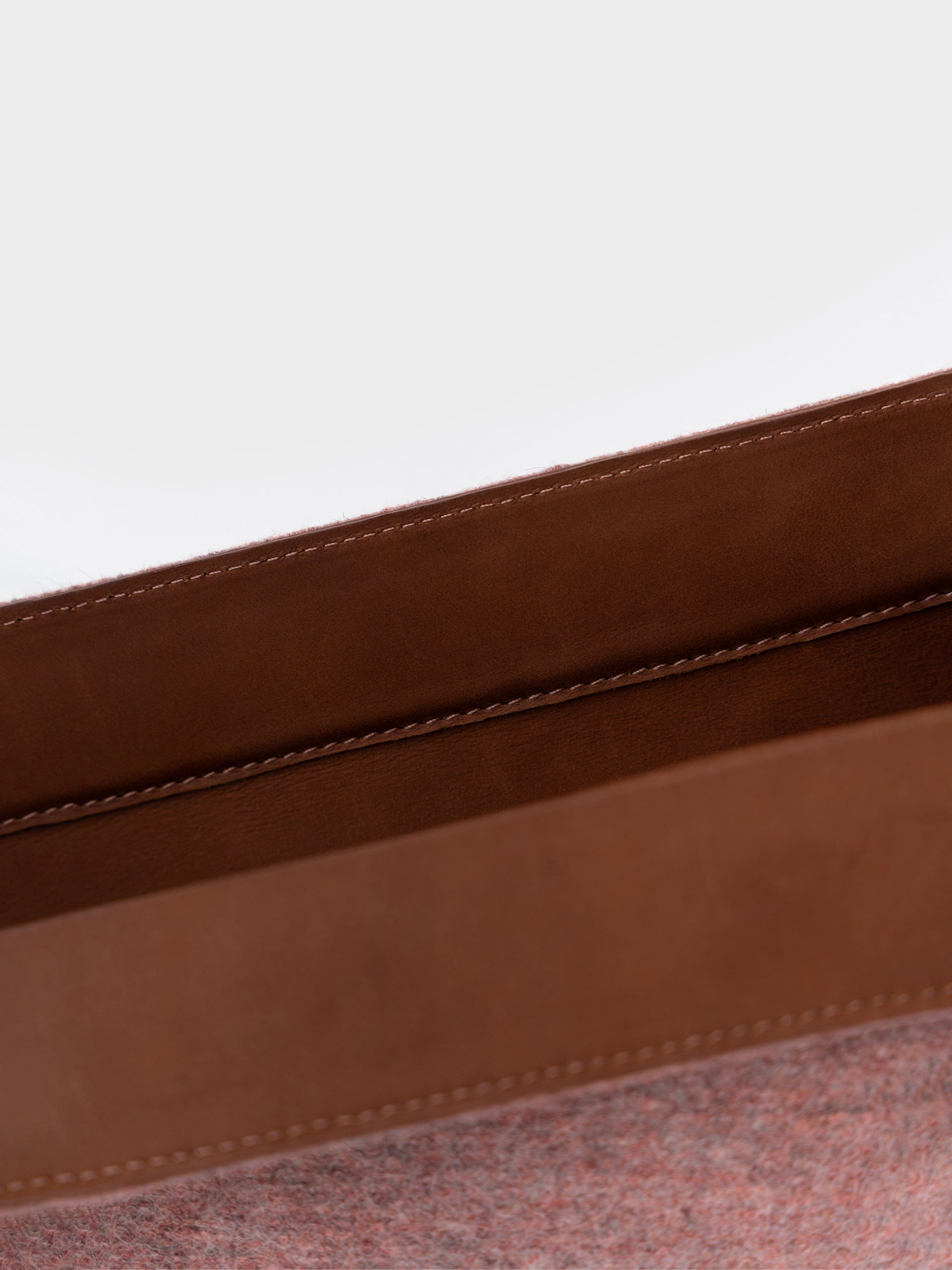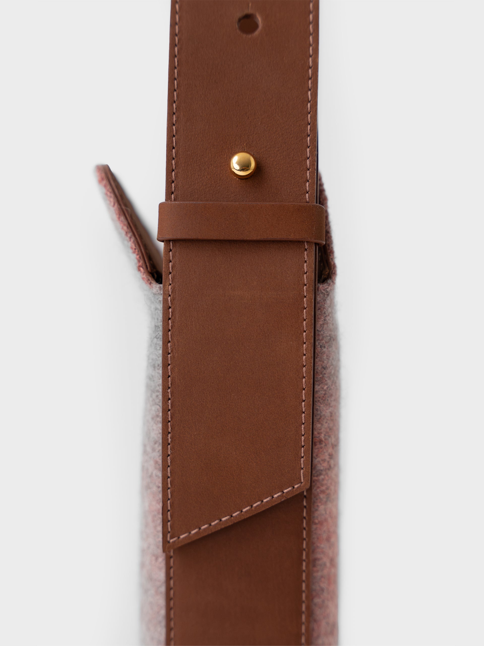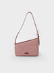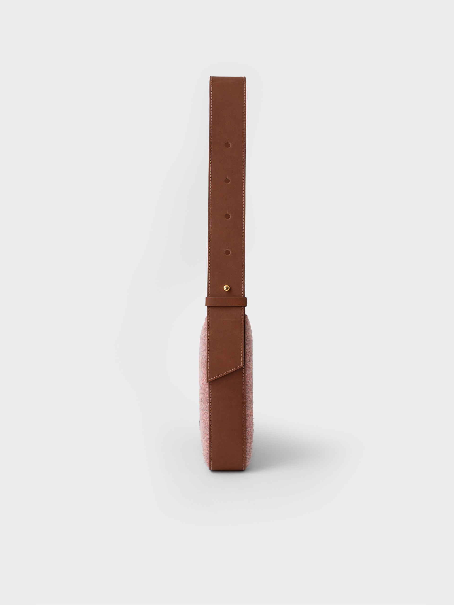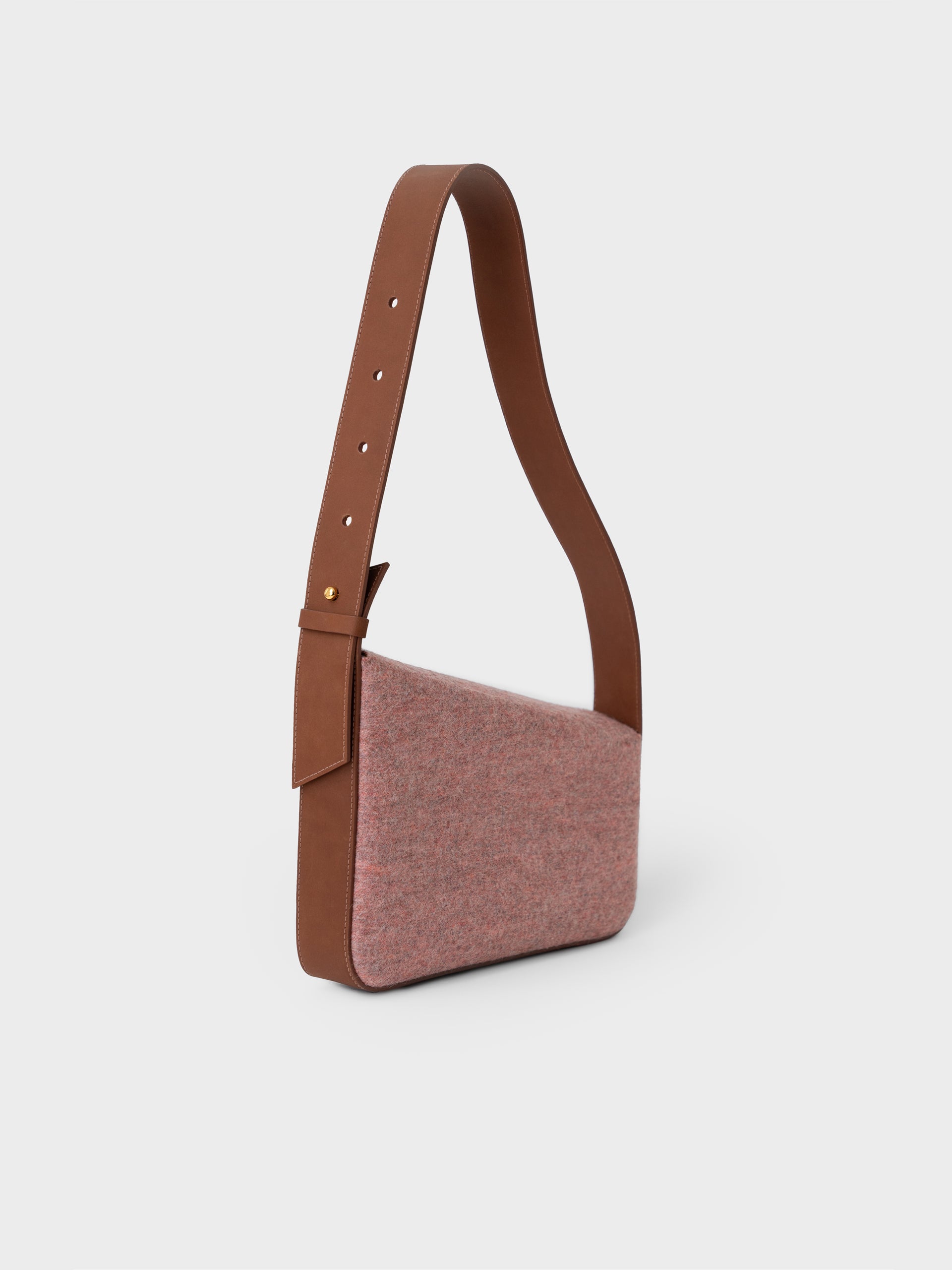 Cartera de hombro Clotilde en tono rosado, destaca por su diseño asimétrico, tapa imantada y asa ajustable que brinda comodidad y un cierre seguro. Está fabricada en cuero genuino con un interior en tejido de alpaca y lana, logrando una fusión perfecta entre elegancia y funcionalidad. | Material predominante: Cuero Y Alpaca