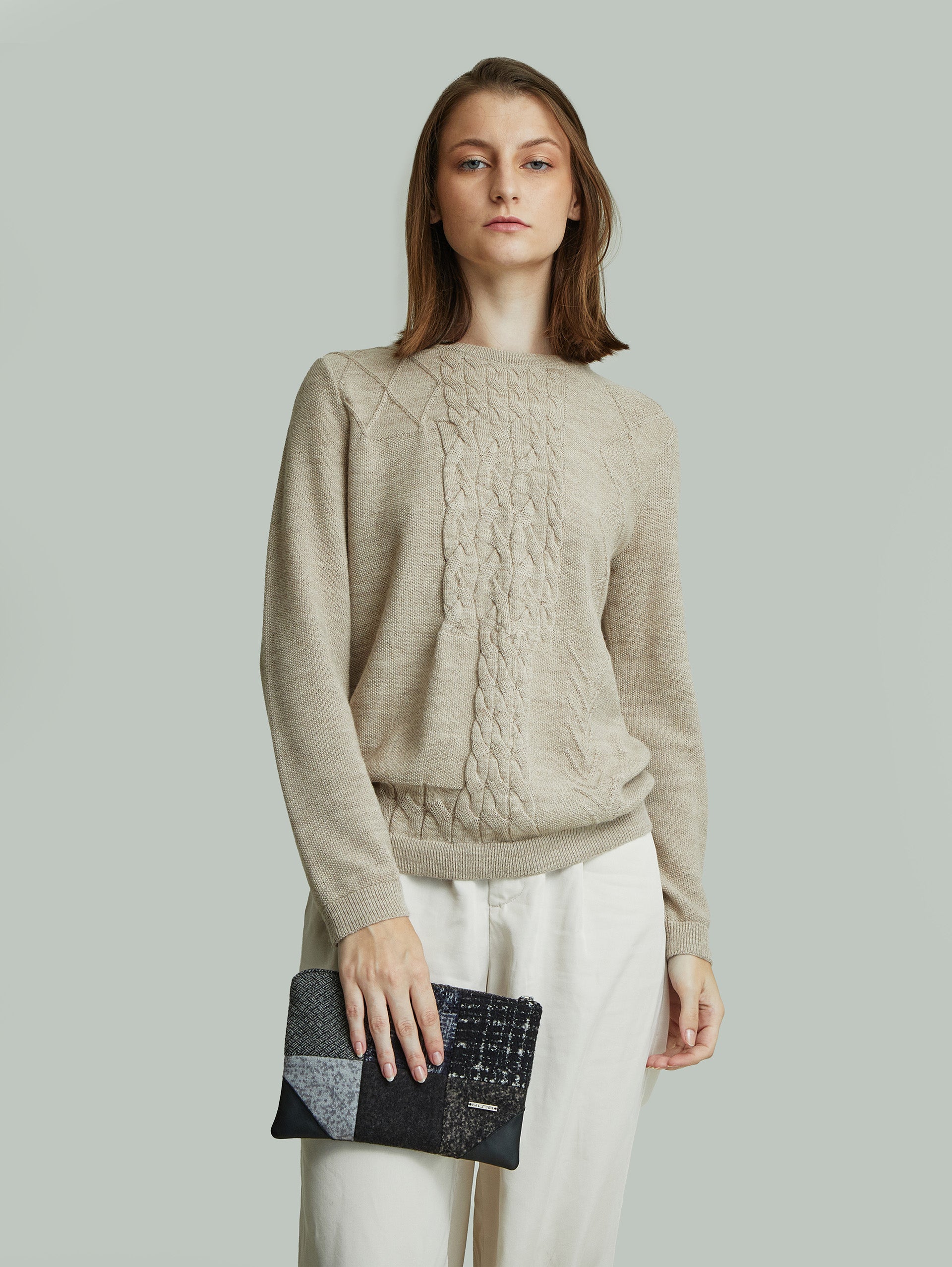 El clutch Patchwork es una fusión encantadora de alpaca, lana y nylon, combinando colores y patrones en un diseño único. Cada puntada resalta la creatividad y habilidad artesanal. Disponible en tres combinaciones exclusivas, este accesorio de mano añade funcionalidad y estilo a tu outfit. | Material predominante: Alpaca y Lana