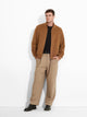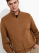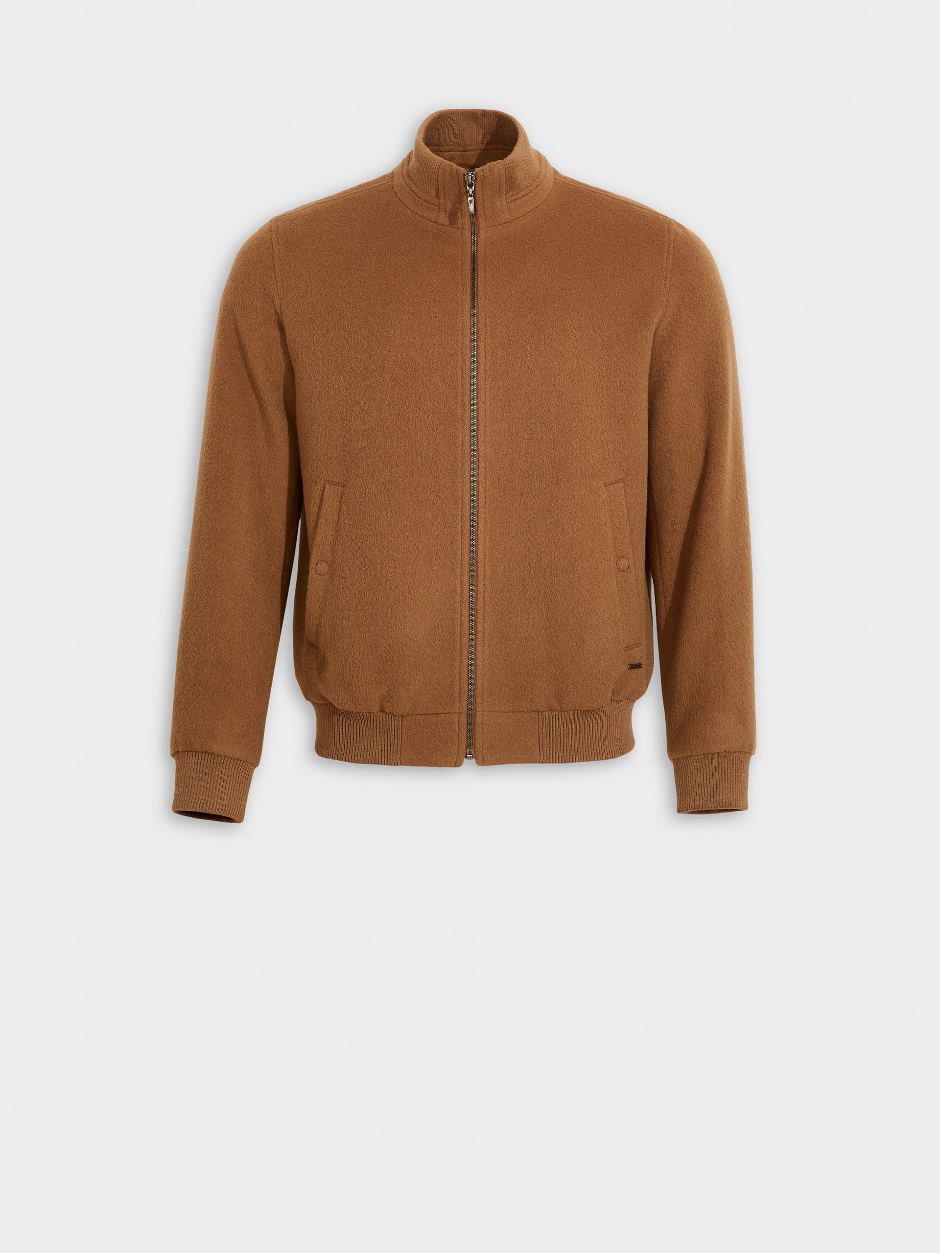 Casaca Alois en tonalidad camel, confeccionada en baby alpaca y lana. Cuenta con cierre metálico, forro interno y detalles tejidos en puños, pretina y cuello interno. Diseño bomber que combina elegancia, calidez y comodidad. | Material predominante: Baby Alpaca