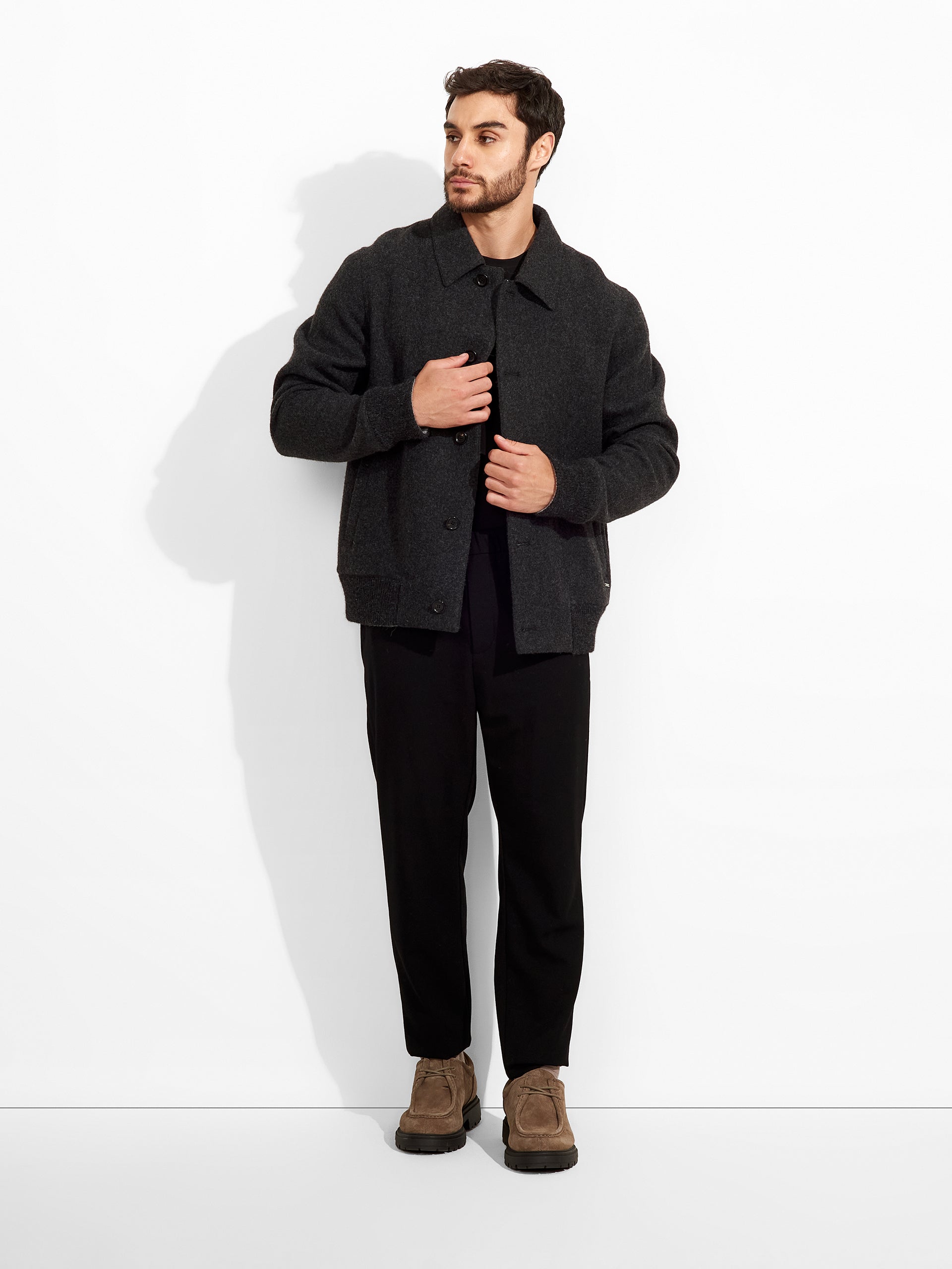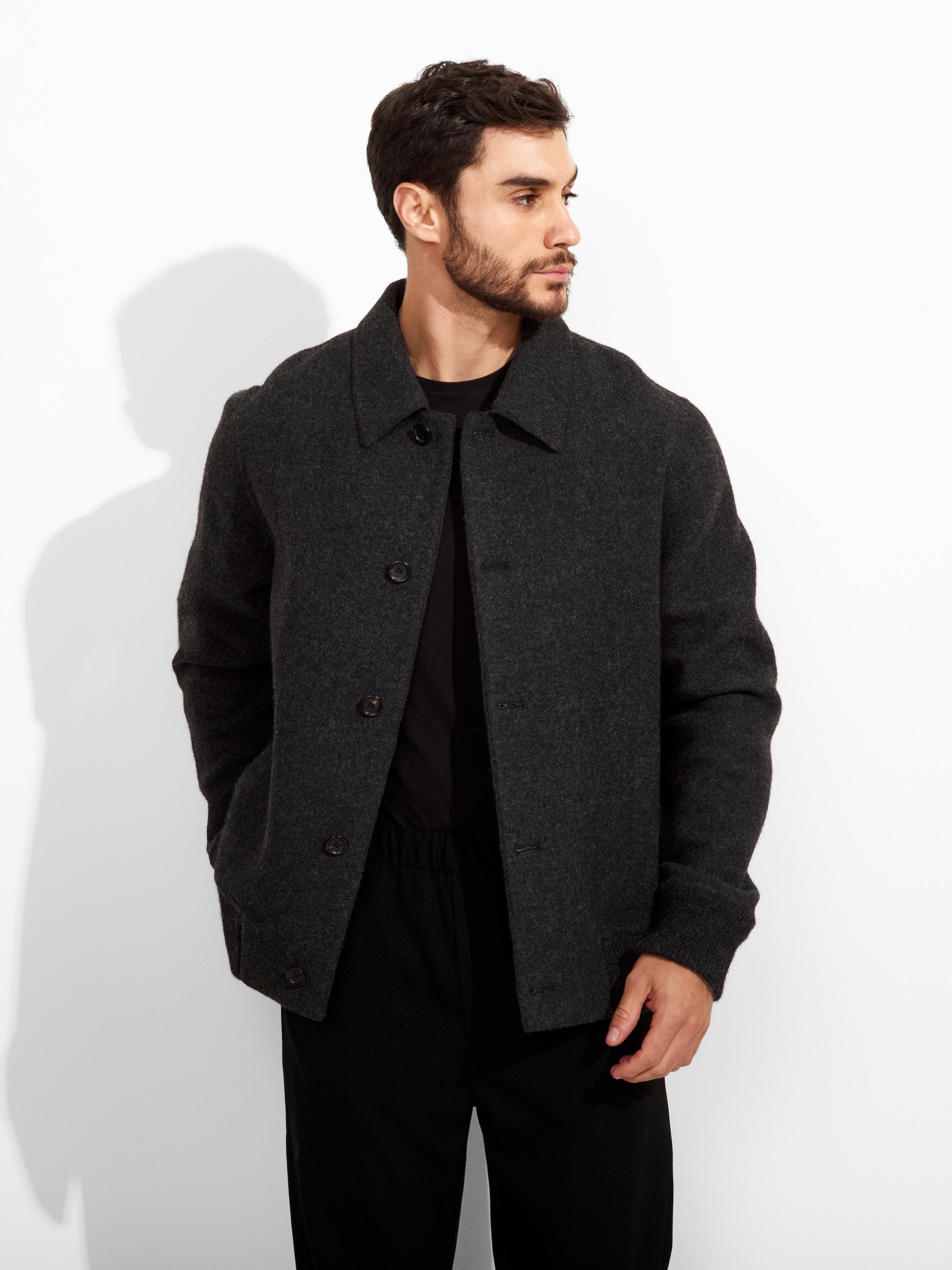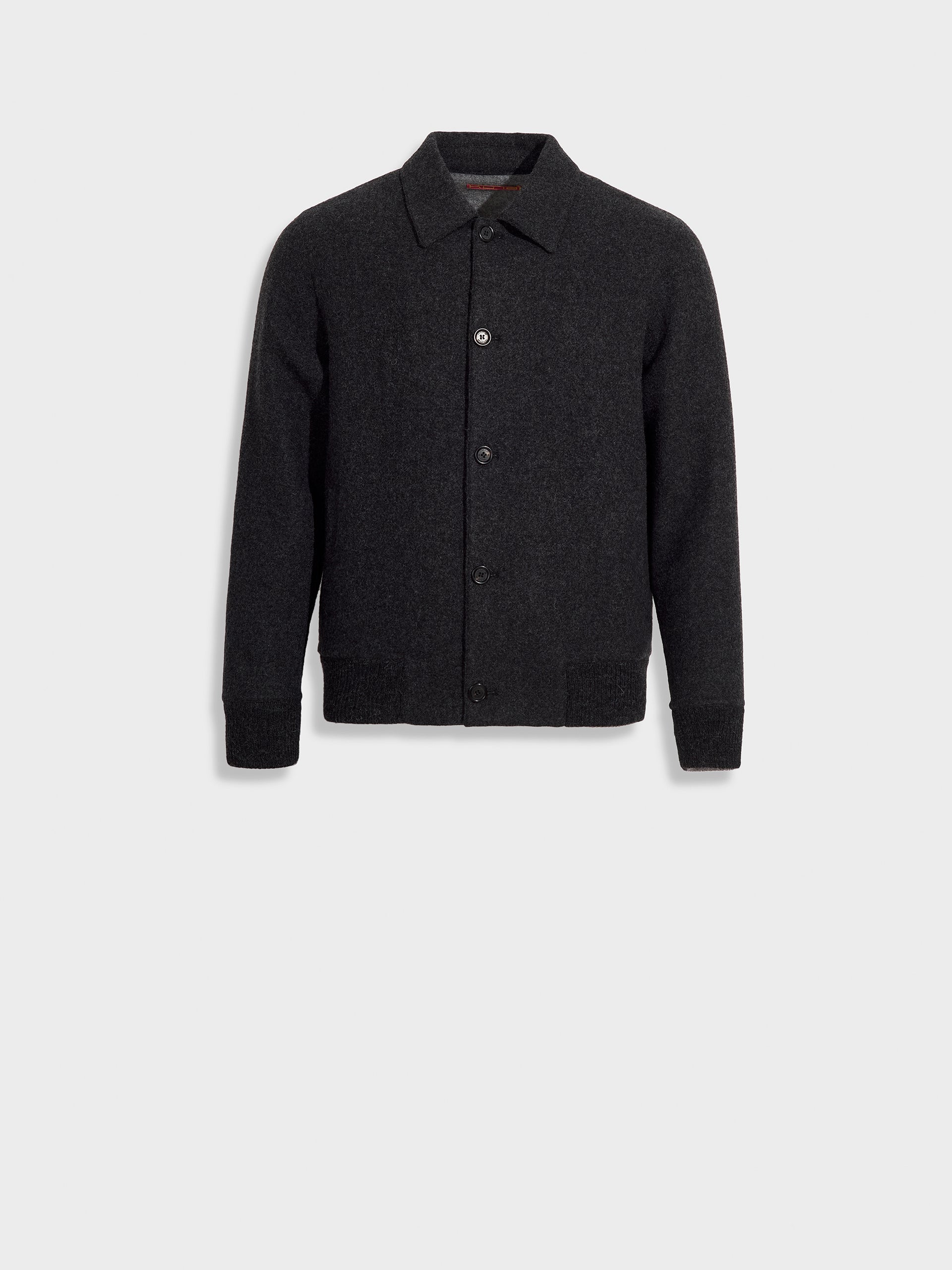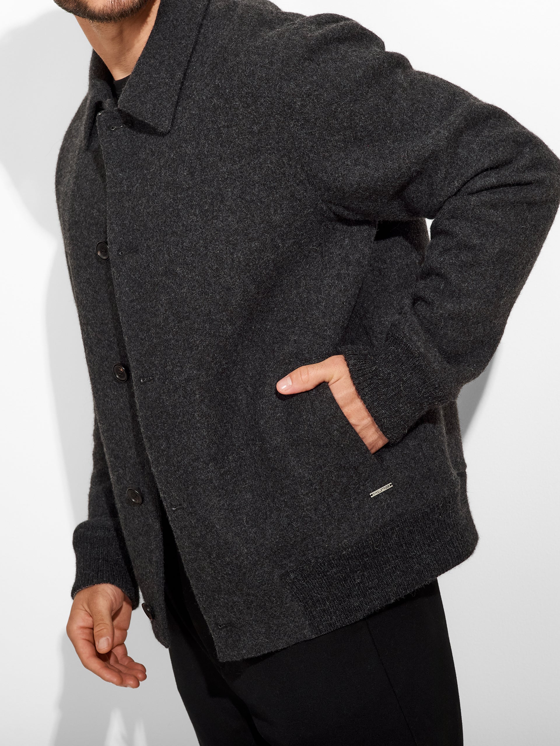 Casaca Zack en tonalidad gris, reversible con botones de cacho al frente, canesú y presilla en la espalda. Cuenta con pretina y puños tejidos en rib. Confeccionada en baby alpaca, lana y nylon. | Material predominante: Baby Alpaca