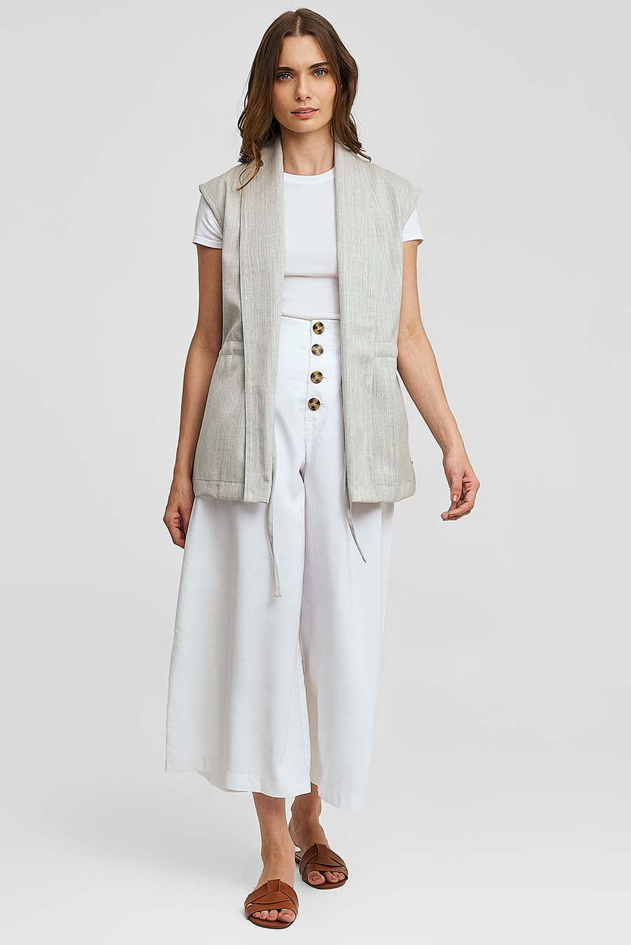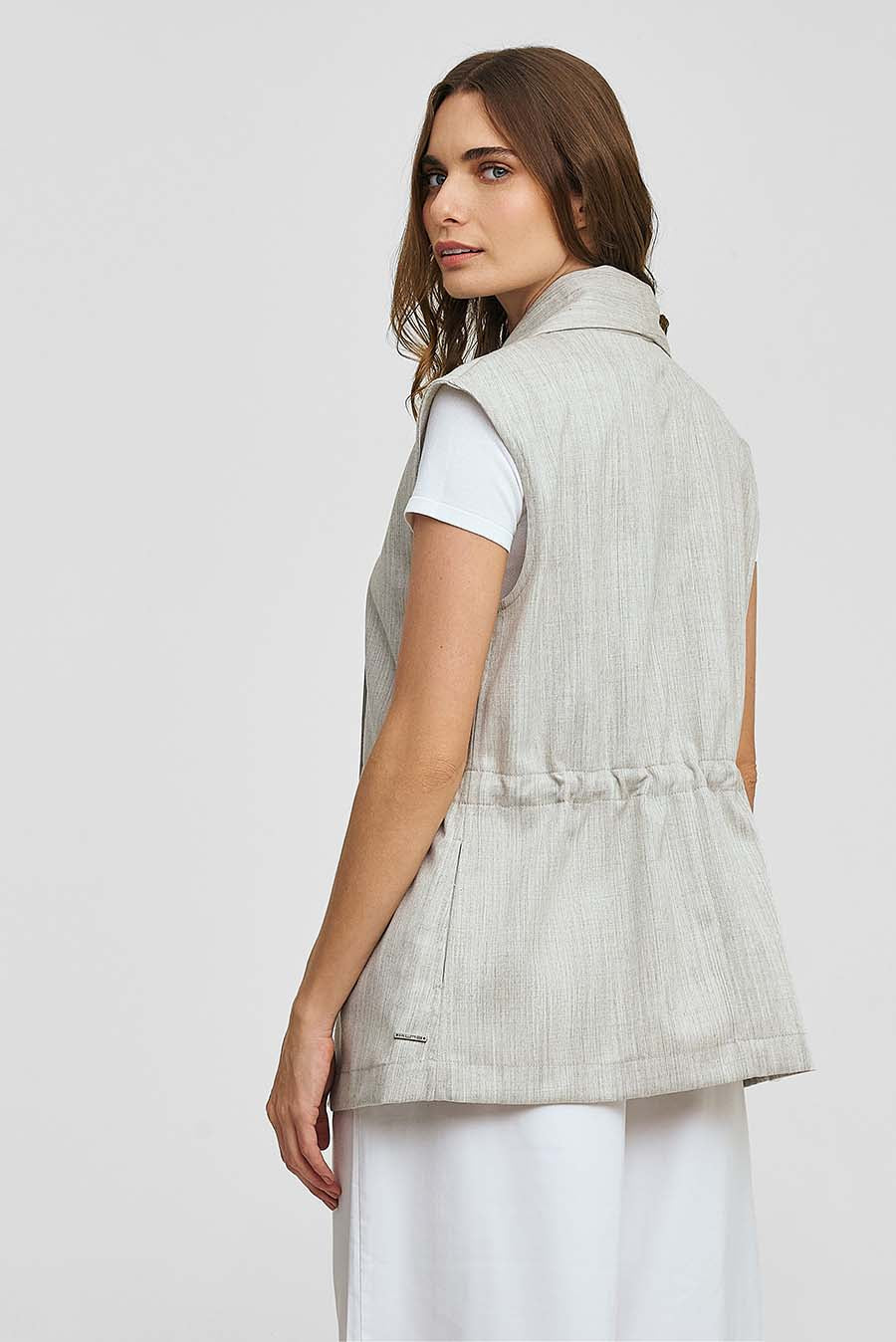 Construye un look casual, fresco y delicado con esta prenda elaborada en lana y baby alpaca. El chaleco Woodland es un "must have" que no puedes dejar de tener esta temporada. Prenda versátil sin mangas, corte ligeramente entallado que destaca por la apariencia de la tela, por el corte y por los detalles especiales en la cintura. | Material predominante: Lana & Baby Alpaca