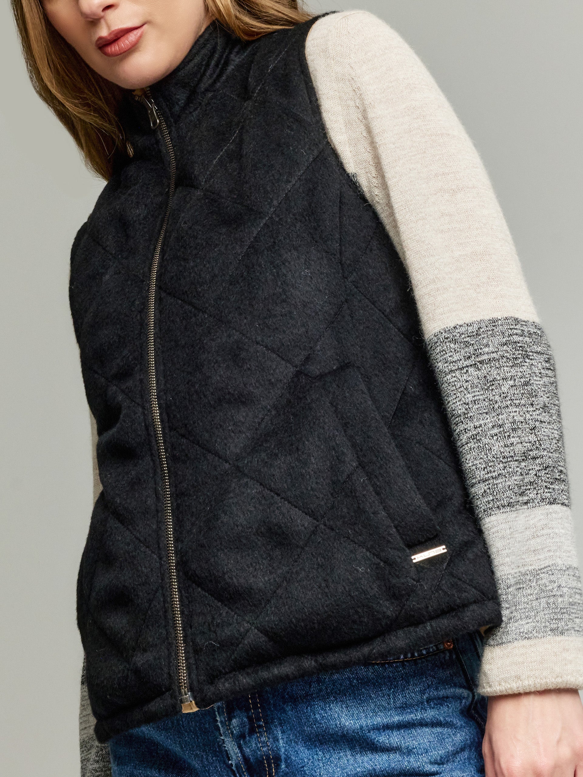El chaleco Ystoria personifica la elegancia funcional. Su diseño versátil y reversible ofrece opciones de estilo dinámicas. La textura única y el cierre metálico del cuello alto añaden sofisticación. Este chaleco no solo es una prenda de moda, sino también una declaración de estilo. Confeccionado con maestría en una mezcla de baby alpaca y lana. | Material predominante: Baby Alpaca