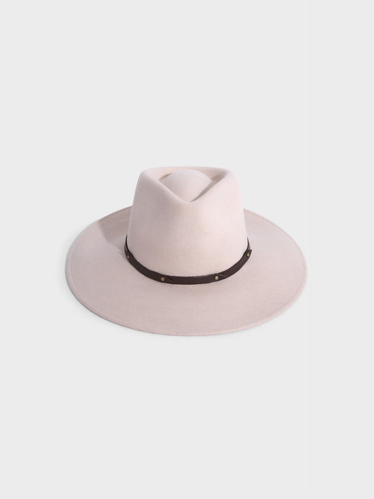 Sombrero Servane en tonalidad beige, confeccionado en mezcla de lana y alpaca. De estilo fedora,...