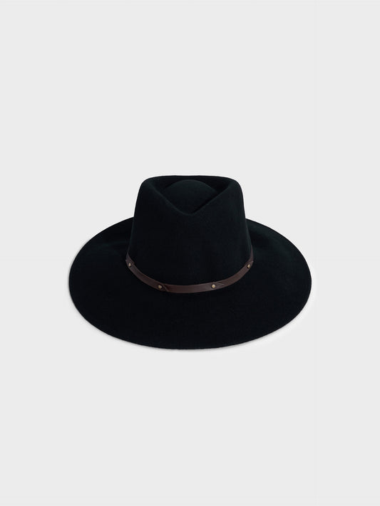 Sombrero Servane en tonalidad negro, confeccionado en mezcla de lana y alpaca. De estilo fedora,...