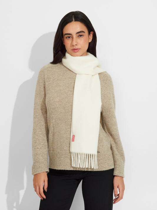 Chalina Adrian en tonalidad blanco, de diseño de color entero con bordes terminados en flecos...