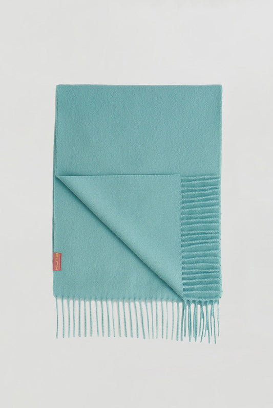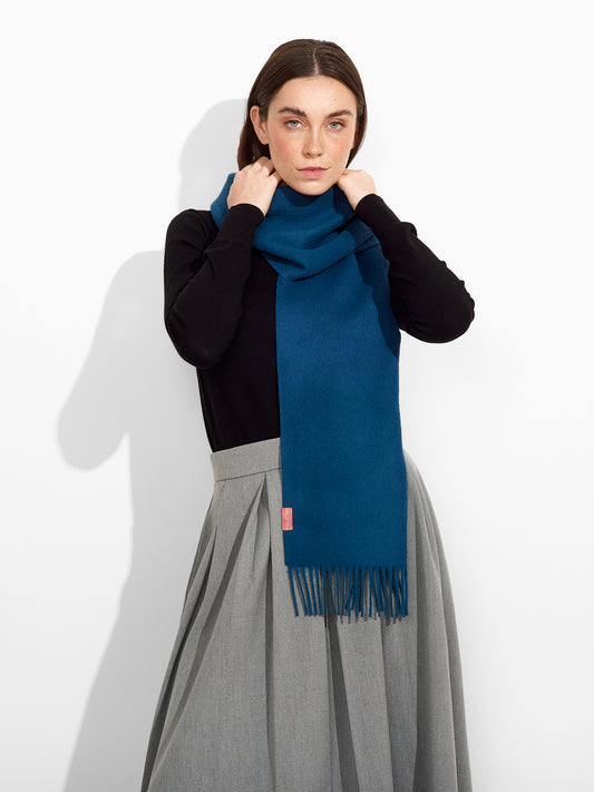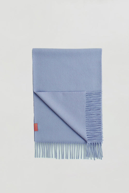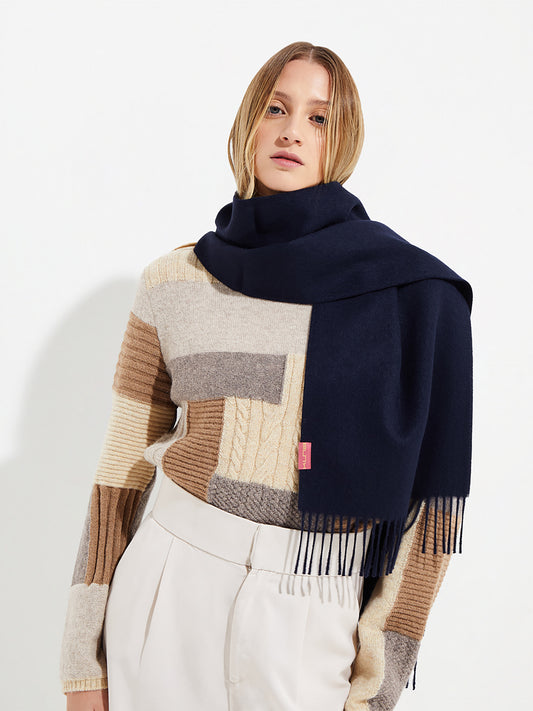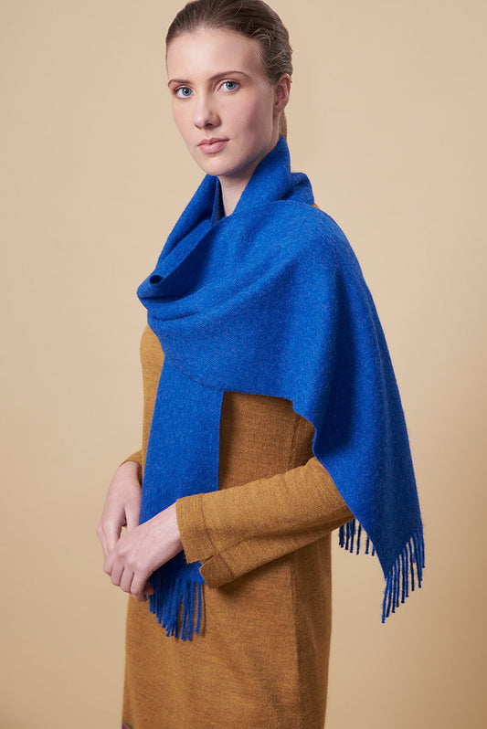 Chalina Adrian en tonalidad azul, de diseño de color entero con bordes terminados en flecos...