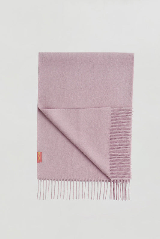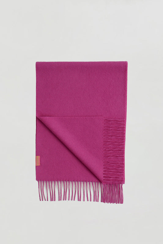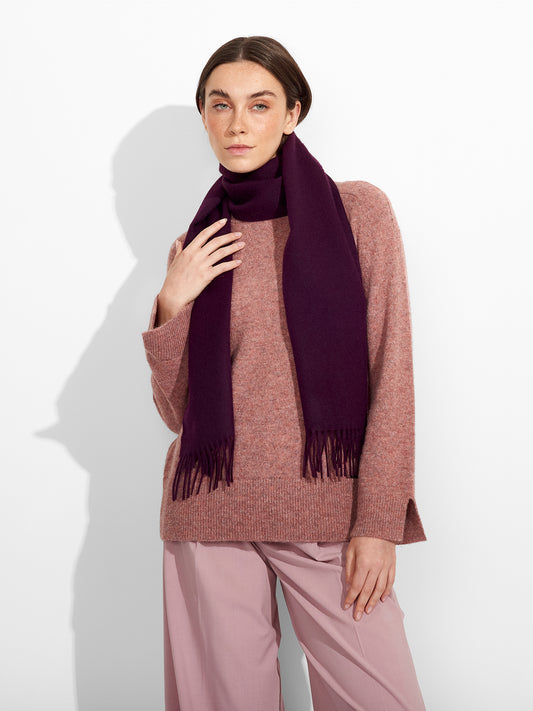 Chalina Adrian en tonalidad morado, de diseño de color entero con bordes terminados en flecos...