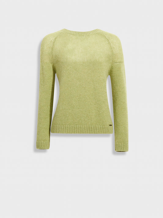 Suéter Zabine en tonalidad verde, convertible en suéter o cárdigan, con cuello redondo cerrado. Presenta...
