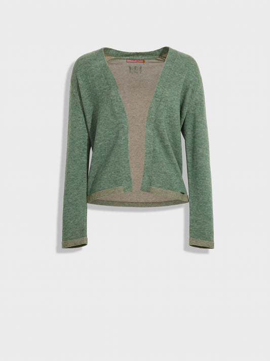 Cardigan Zoraya en tonalidad verde, de diseño abierto, sin botones ni cierres. Presenta escote en...