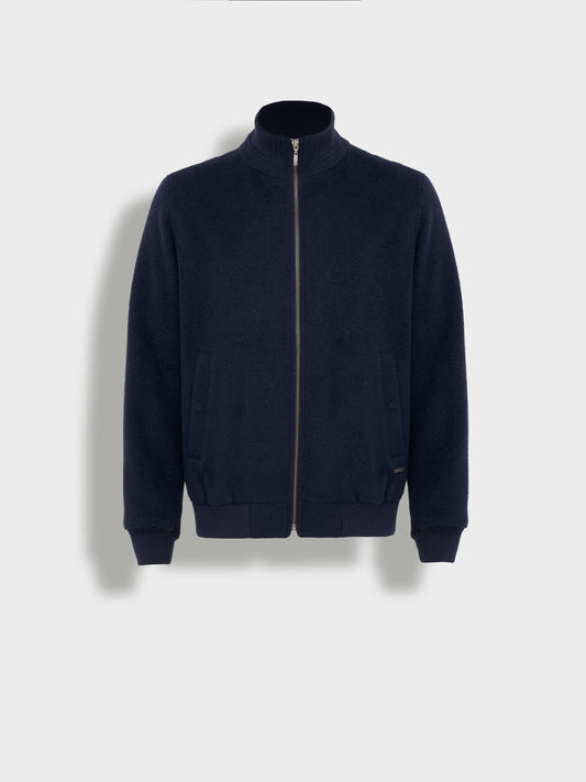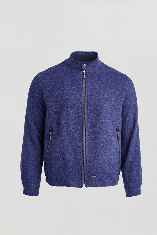 Casaca Alois en tonalidad azul, confeccionada en baby alpaca y lana. Cuenta con cierre metálico,...