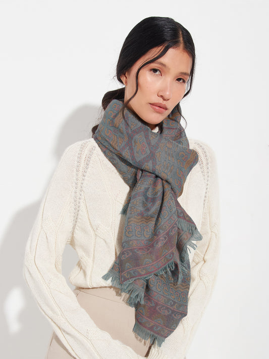Manta Chimu 13 en tonalidad turqueza, elaborada en 100% baby alpaca con técnica Jacquard en...