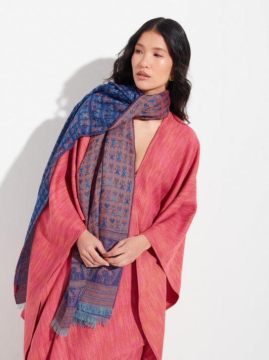 Estola Lambayeque 8 en tonalidad azul, elaborada en 50% Royal alpaca y 50% seda, con...