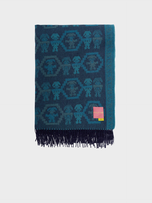 Manta Mochica 2 en tonalidad azul, elaborada en 100% baby alpaca con técnica Jacquard en...