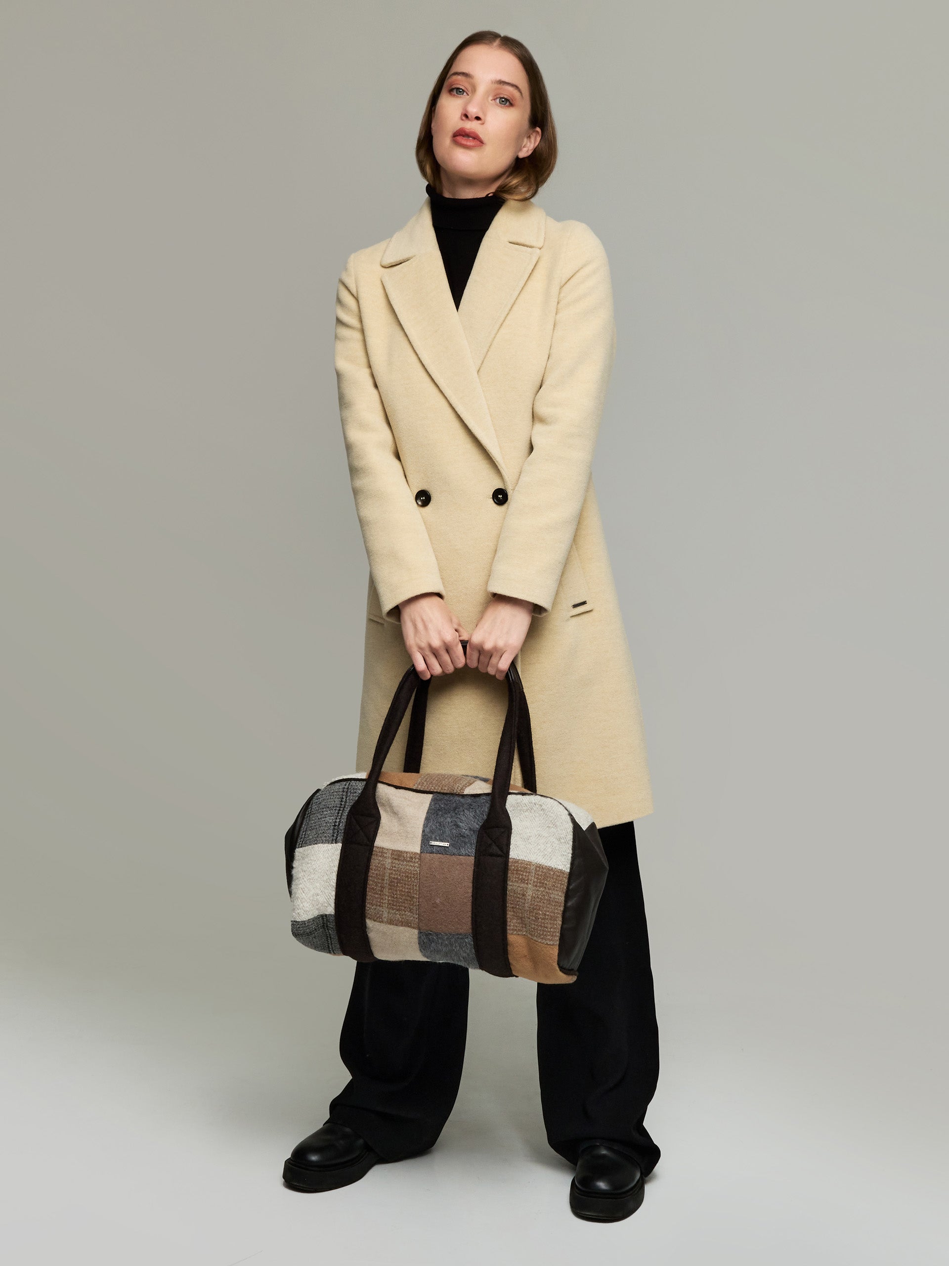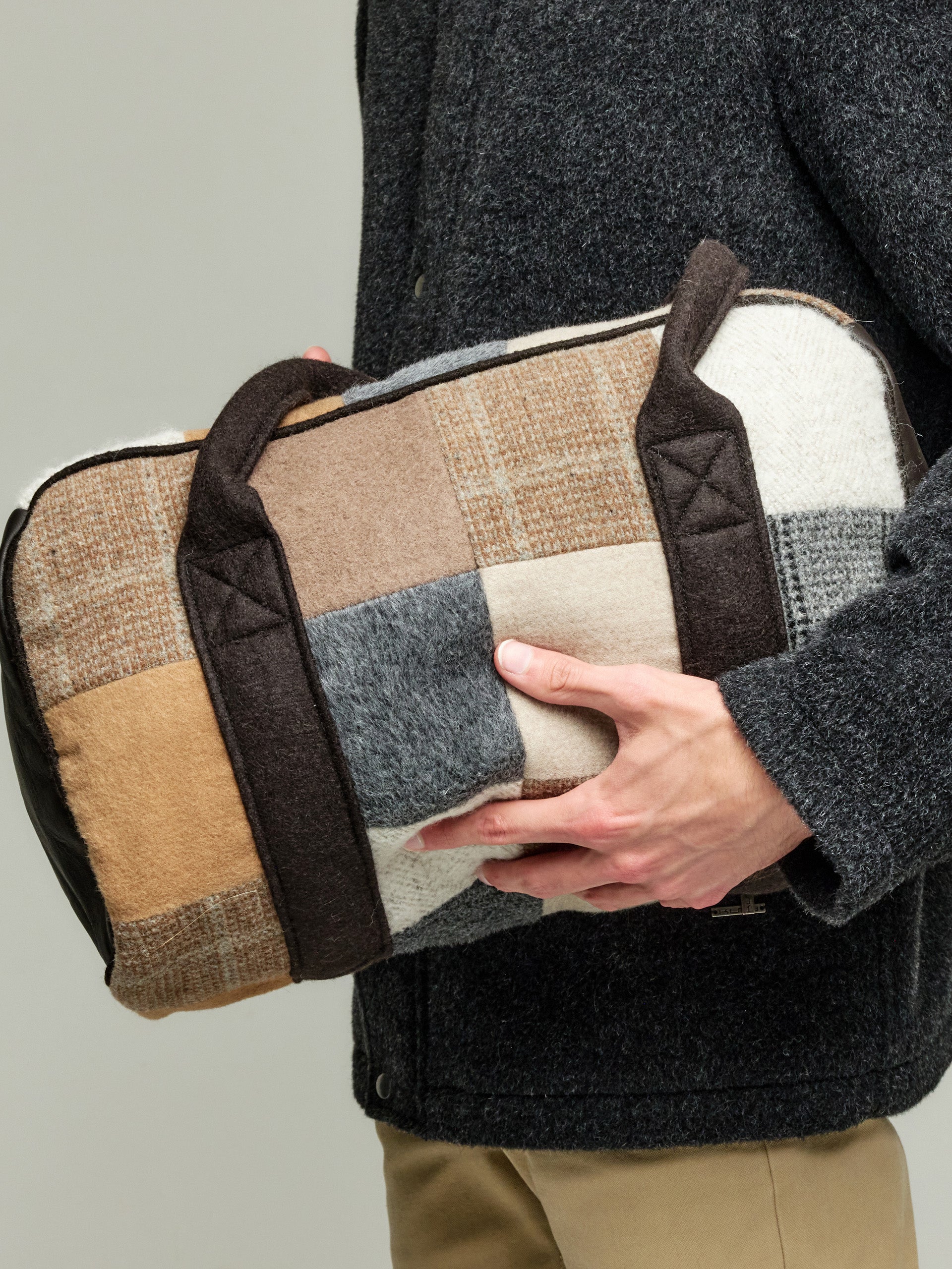 Nuestro bolso Patchwork fusiona meticulosamente piezas de tela, combinando colores y patrones en un diseño encantador. Esta pieza artesanal, elaborada en alpaca, lana y nylon, combina funcionalidad con estilo, resaltando la creatividad y habilidad en cada puntada. Disponible en tres combinaciones únicas. | Material predominante: Alpaca