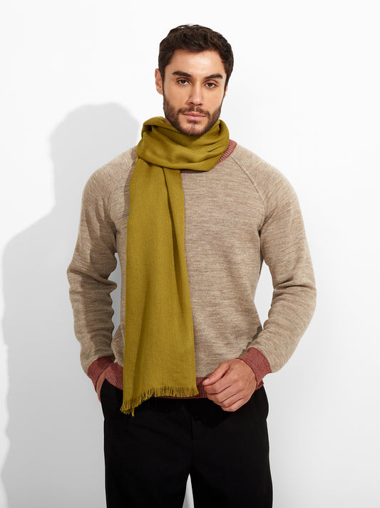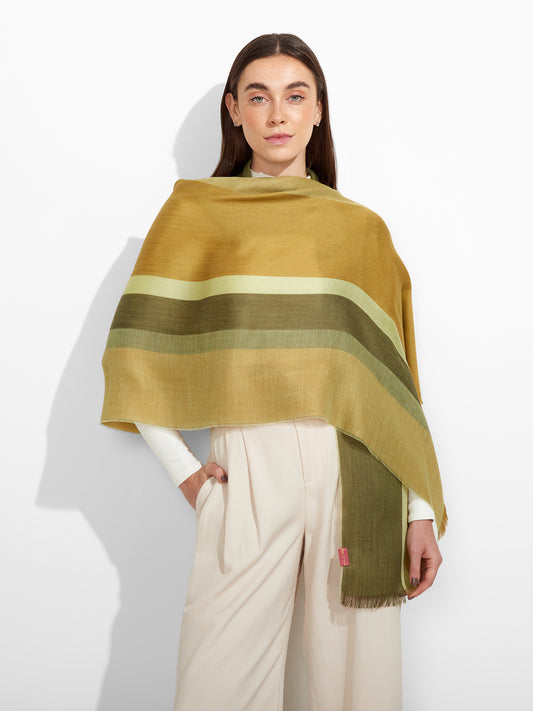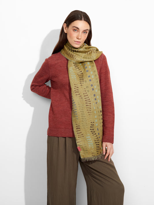 Estola Zane en tonalidad verde, presenta tejido jaquard con un diseño de líneas irregulares y...