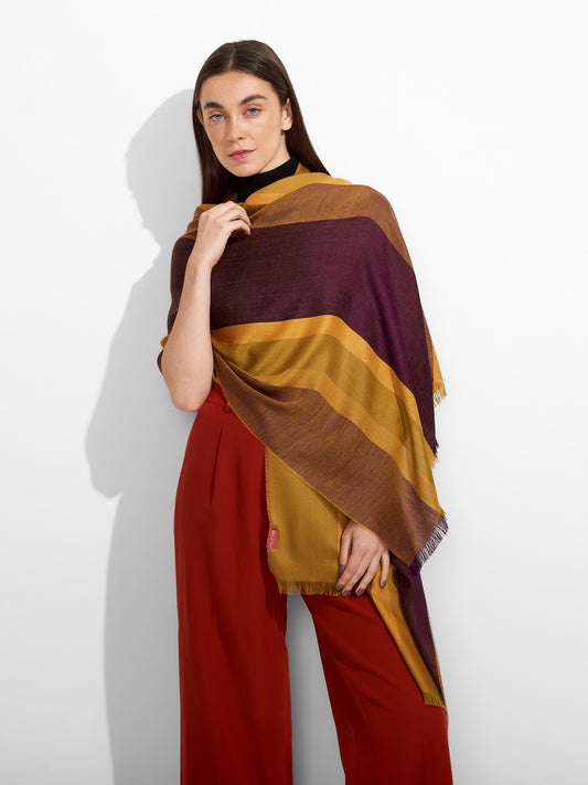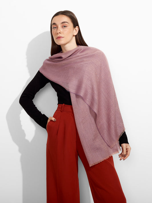 Estola Teaberry en tonalidad morado, de color entero, presenta bordes con flecos finos que aportan...