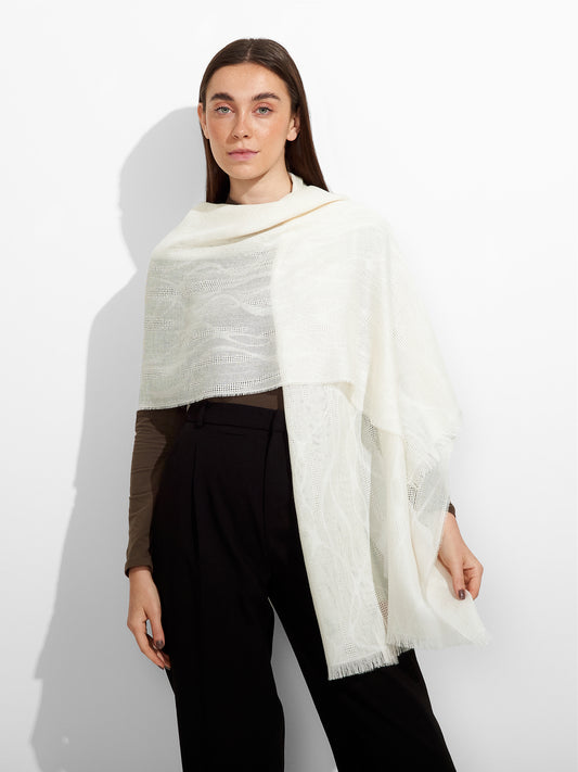 Estola Zuniga en tonalidad ecru, de color entero y diseño de líneas onduladas que recorren...