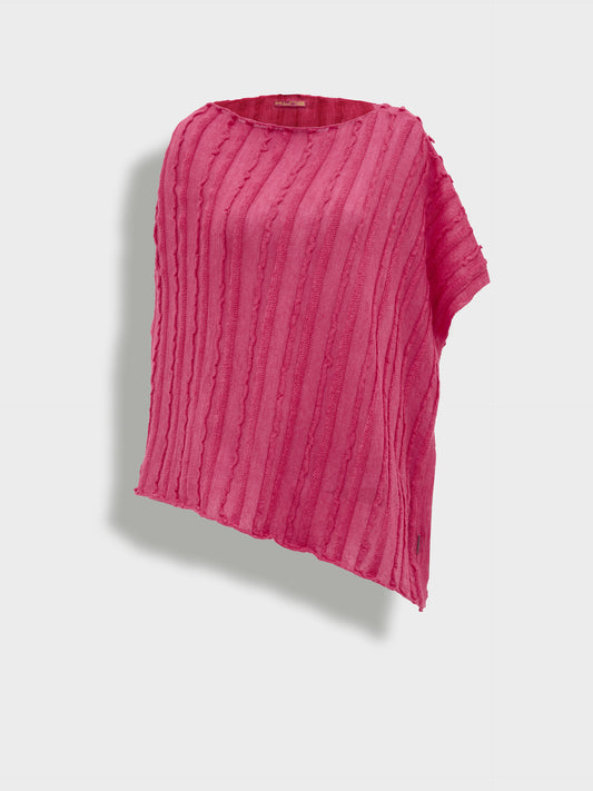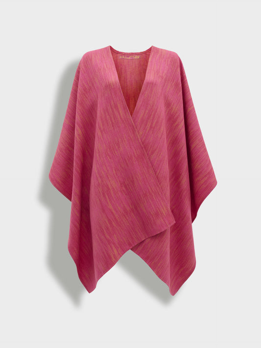 Poncho Zarina en tonalidad fucsia, confeccionado en baby alpaca y seda. Es un poncho cerrado...