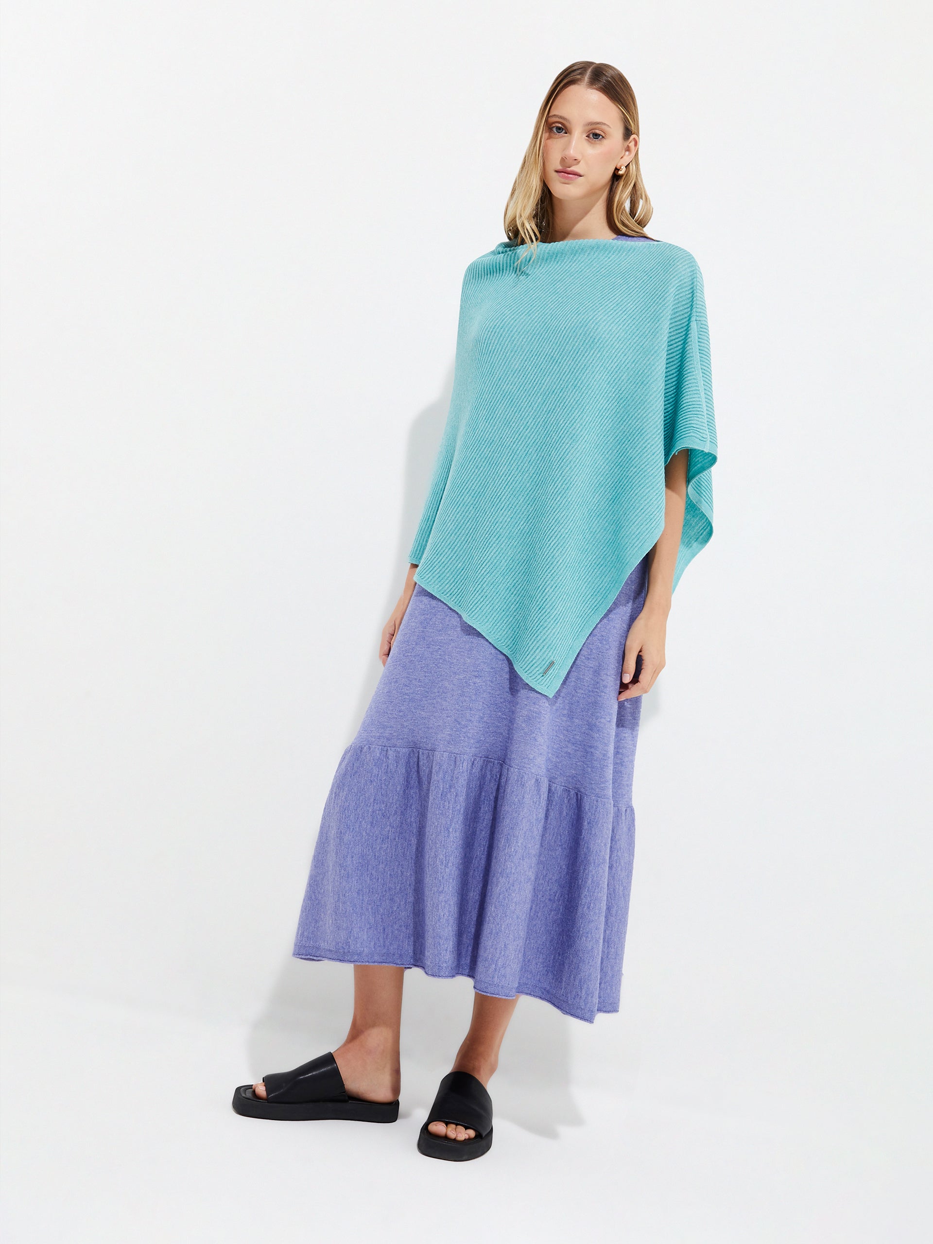 Our classic Ypanema poncho, crafted from organic cotton and baby alpaca, is an asymmetrical and stylish accessory for women. Available in two colors, it features a slit on the left side that adds a distinctive touch to its design. Ideal for complementing any outfit, this poncho offers both style and comfort. | Predominant material: Cotton