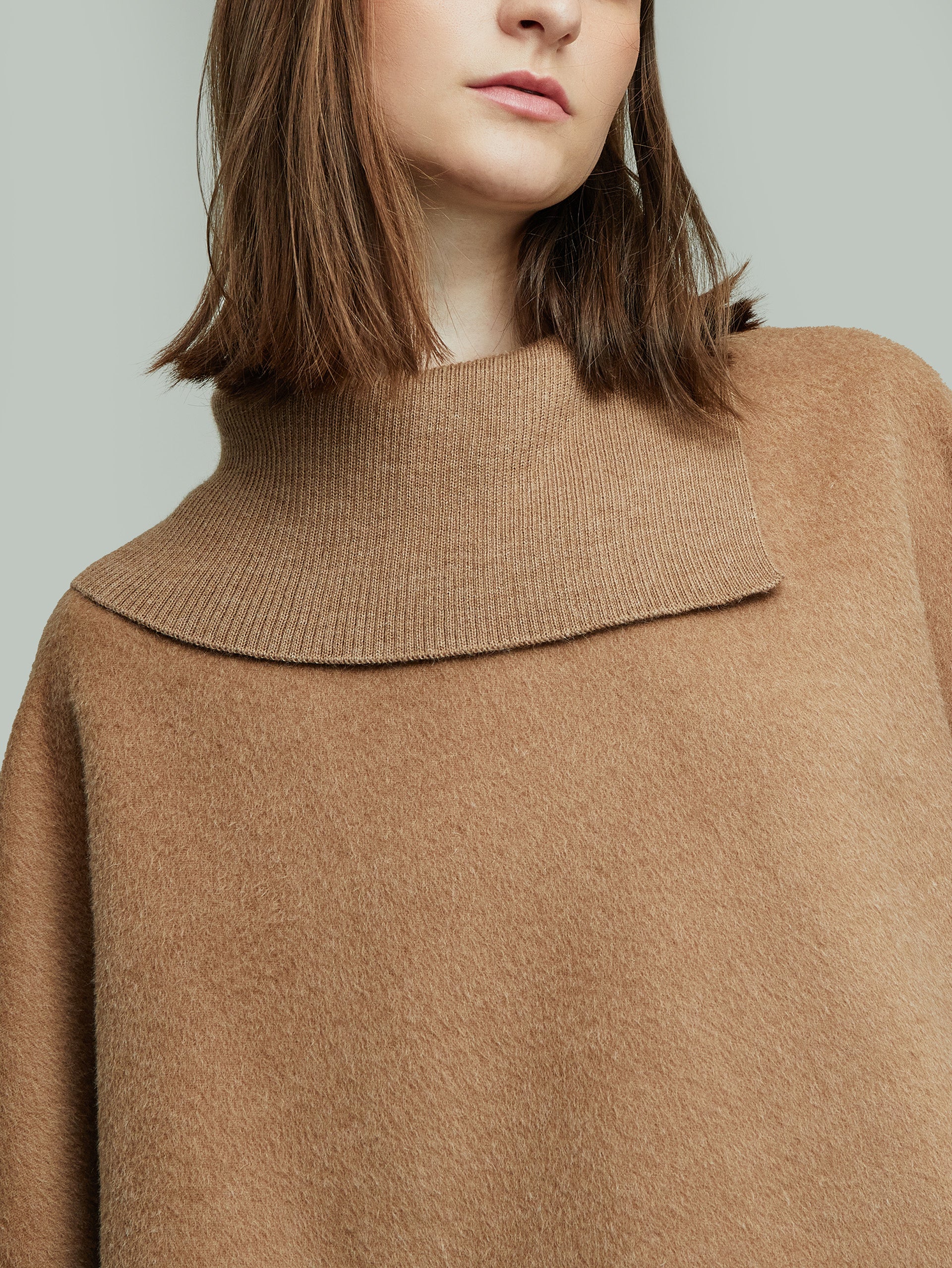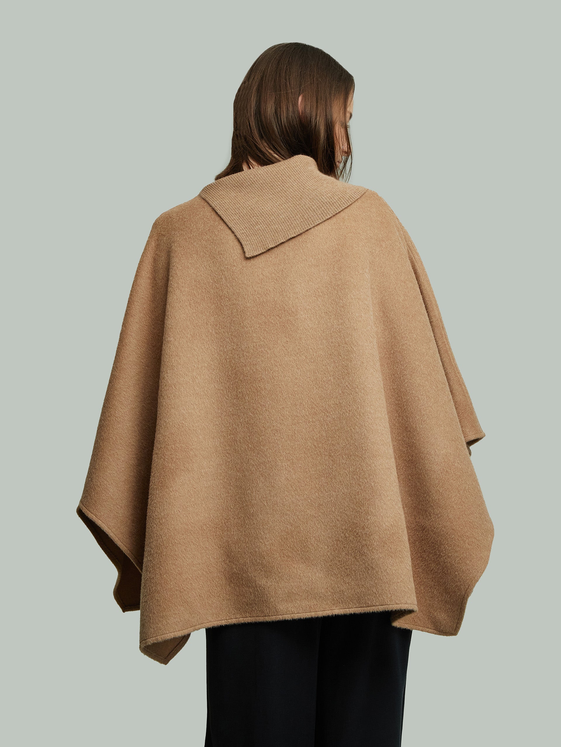 The Yssey cape is made of baby alpaca and wool. Its exclusive design adds a modern touch that is essential for your wardrobe. The semi-open knitted collar gives it a special touch, combining style and comfort. Yssey is not just a garment, it is a fashion statement that combines the softness of natural fibers with an avant-garde design | Predominant material: Baby Alpaca