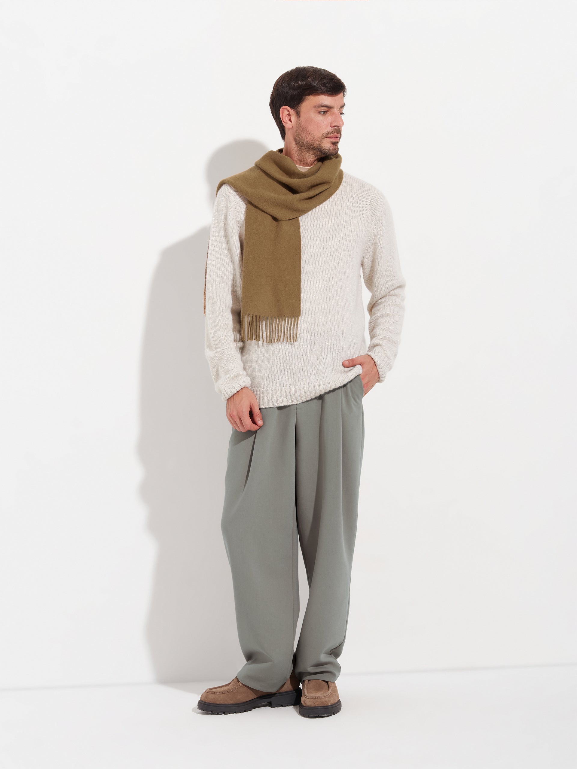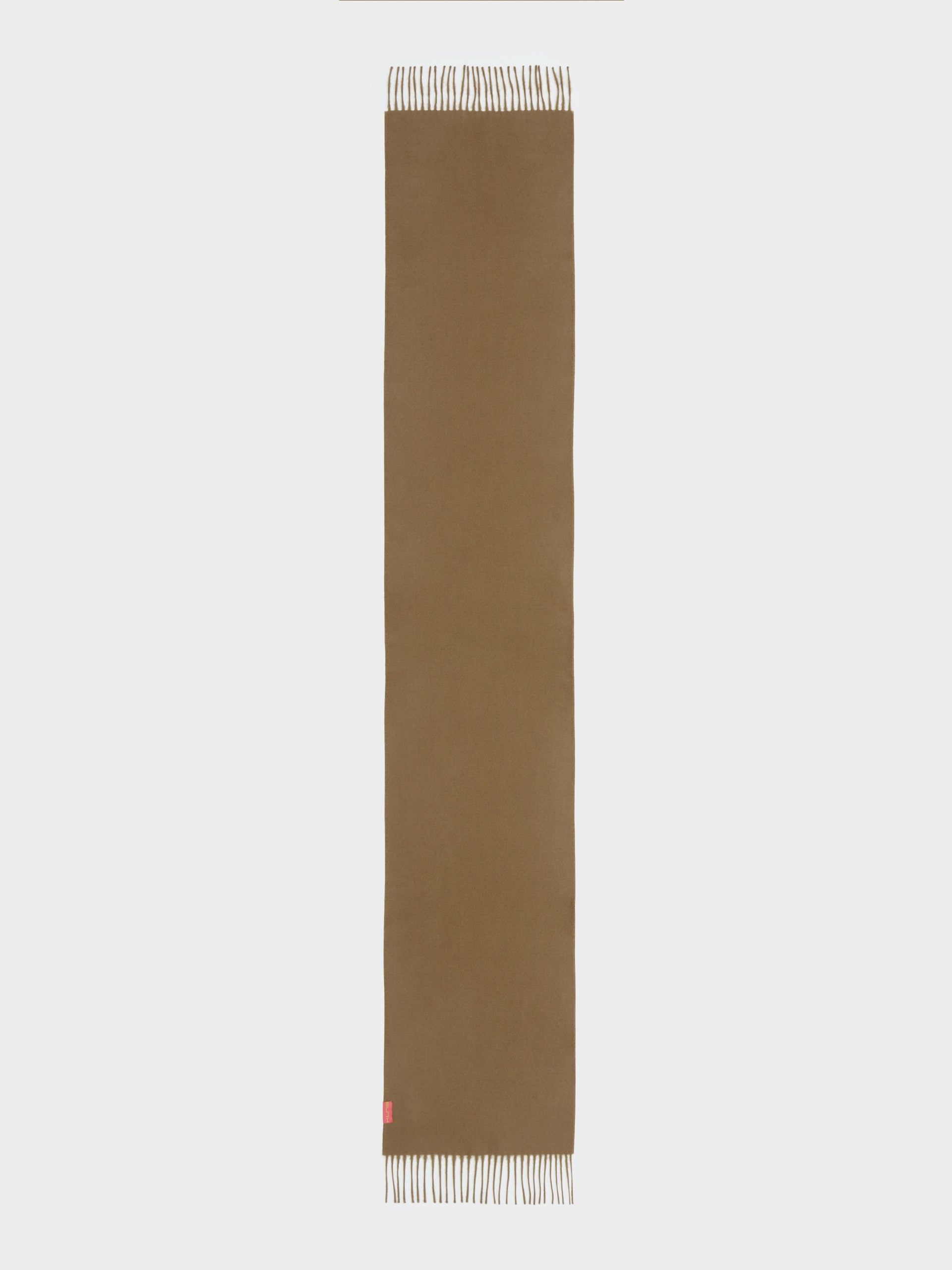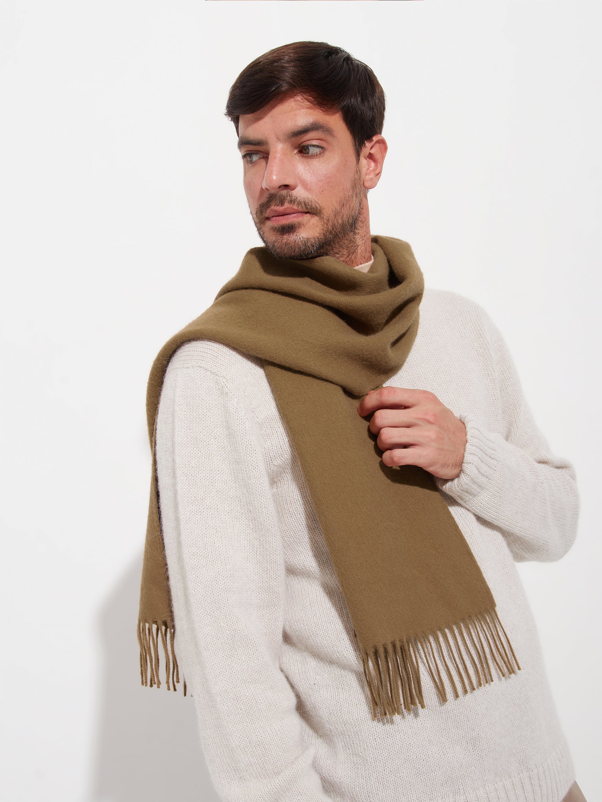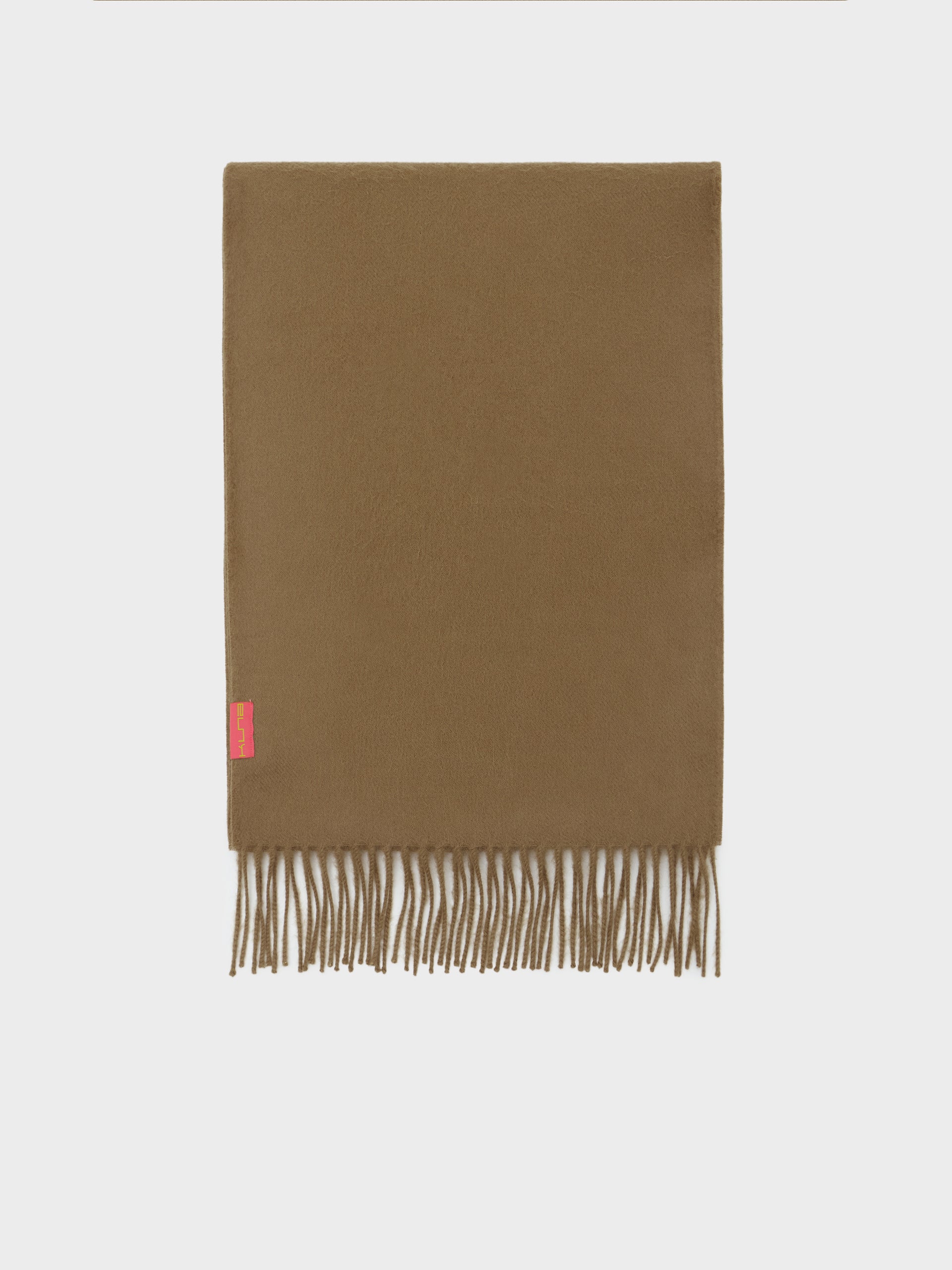 Chalina Adrian en tonalidad beige, de diseño de color entero con bordes terminados en flecos gruesos. Confeccionada en baby alpaca, brinda calidez y suavidad. | Material predominante: Baby Alpaca