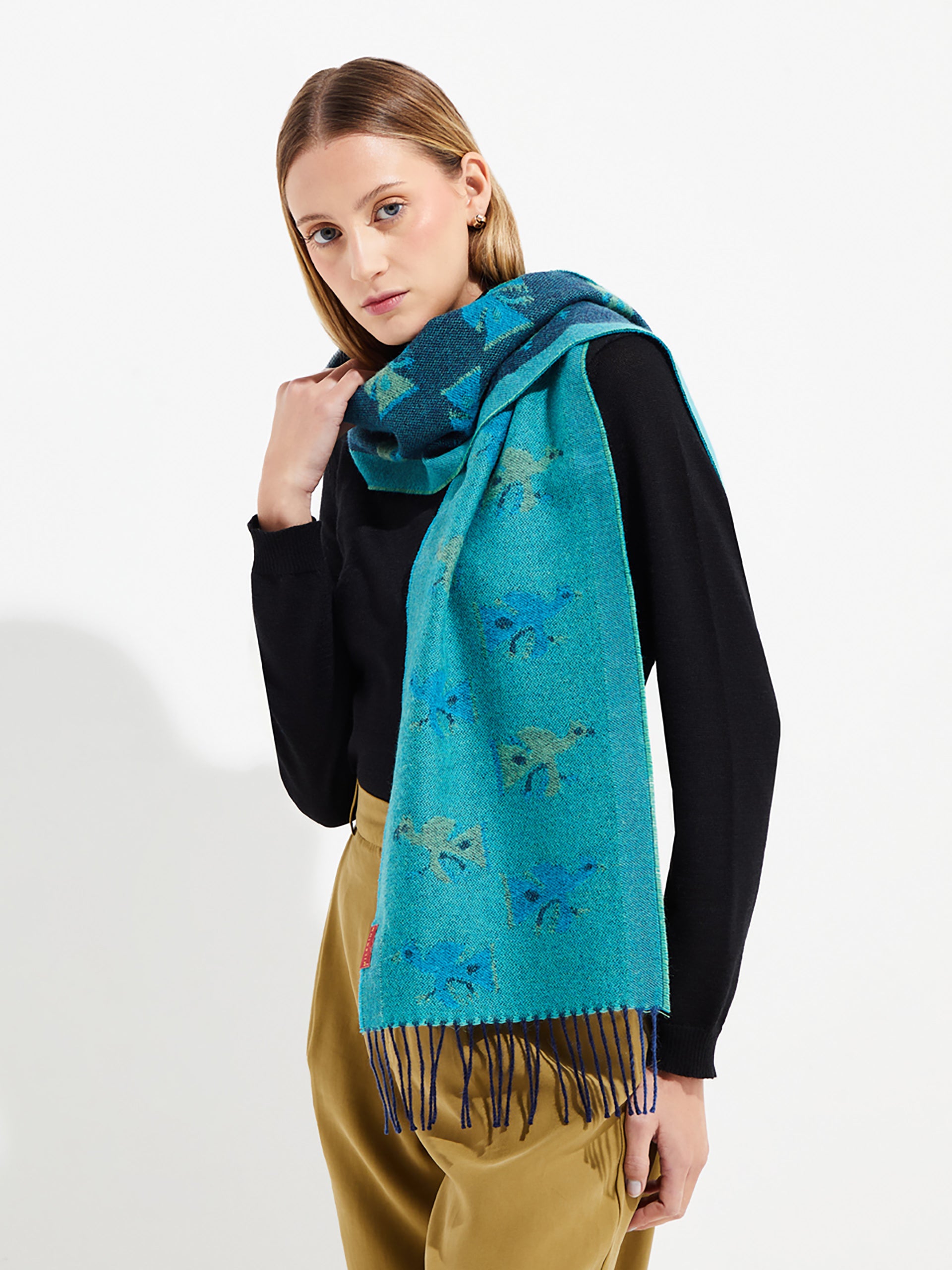 Explora la exquisita combinación de tradición y modernidad con nuestra chalina Nazca 19. Tejida meticulosamente con baby alpaca y seda, esta pieza rinde homenaje a la rica herencia cultural de la civilización Nazca. Sus diseños inspirados en esta antigua cultura peruana añaden un toque de arte y misticismo a tu atuendo. | Material predominante: Baby Alpaca