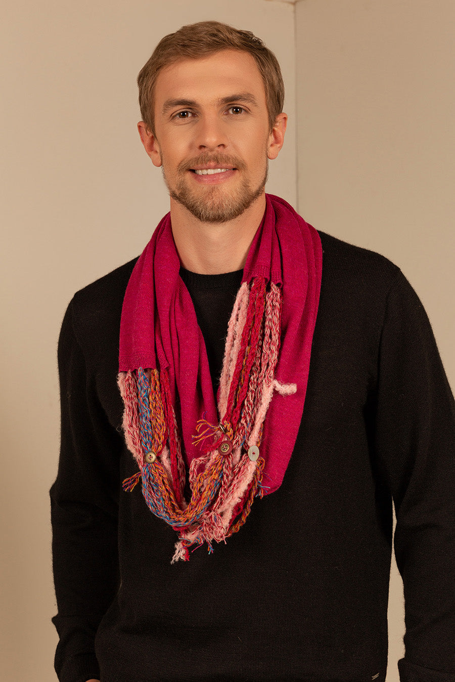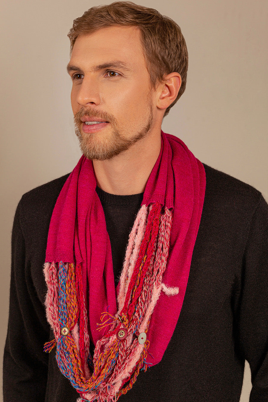 This brightly coloured baby alpaca scarf will add flair to any look.