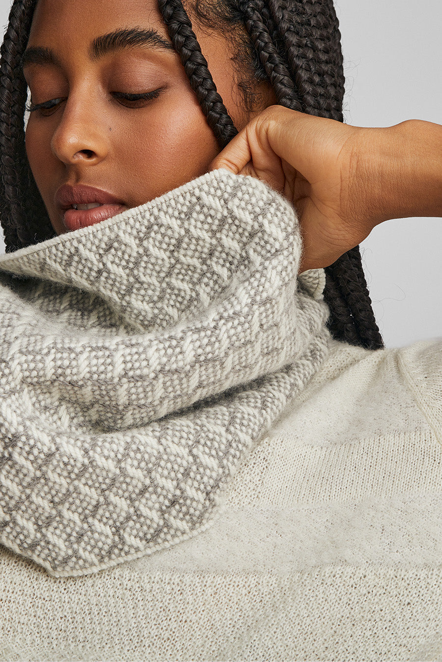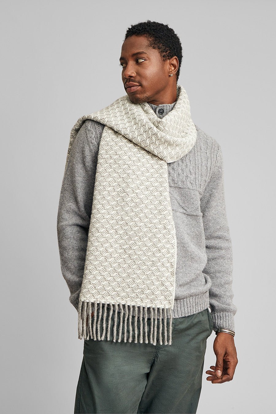 In pleasant light tones, our Wedeke stole will become an accessory that will perfectly complement your day-to-day looks. Made in baby alpaca and eco wool. | Predominant material: Baby Alpaca