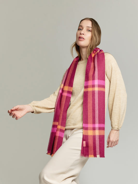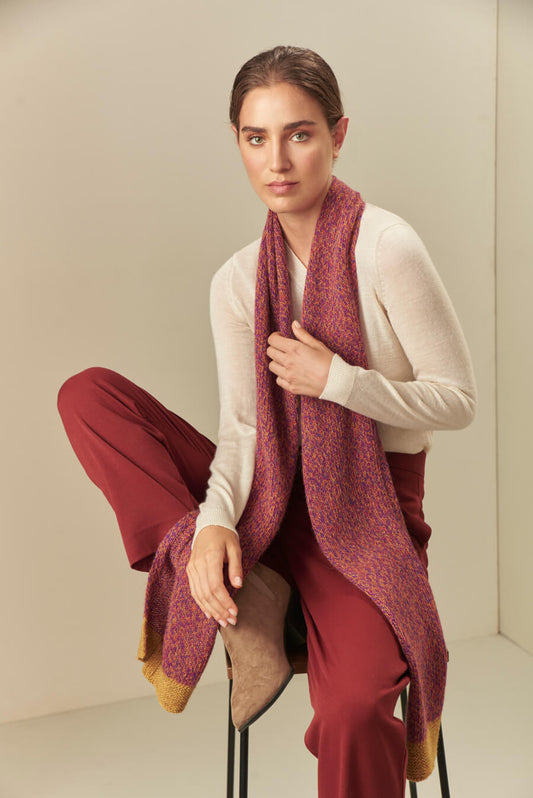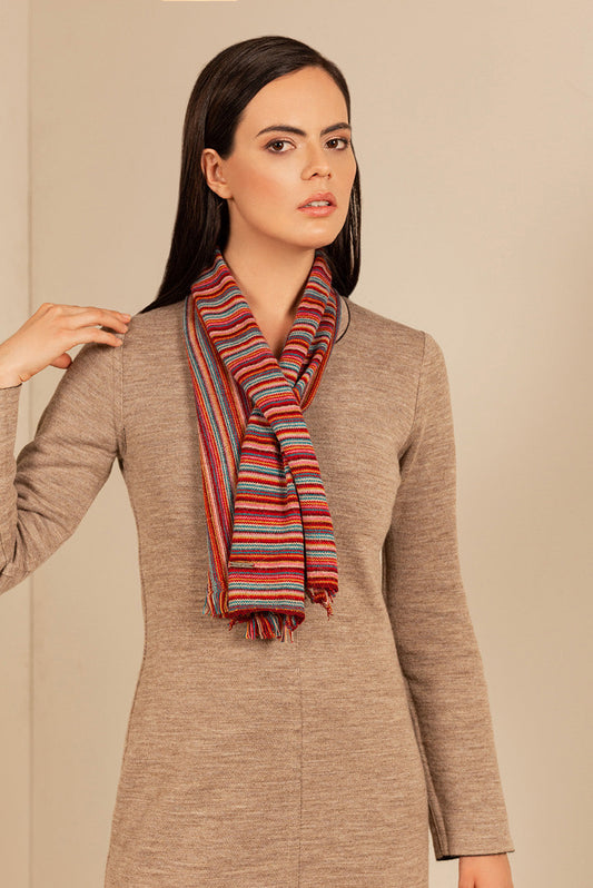 Soft and light, our Upi scarf is made of 100% baby alpaca. Enjoy the colourful...