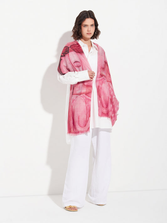 Estola Lambayeque 9 en tonalidad rojo, elaborada en 50% Royal alpaca y 50% seda, con...