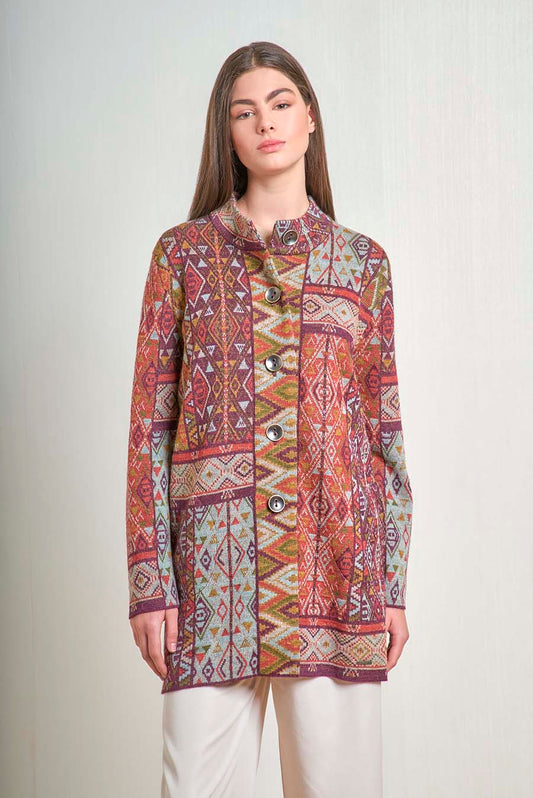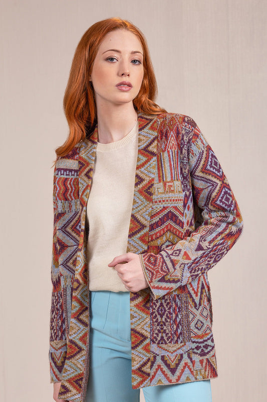 Soft baby alpaca threads create our Wadja cardigan, a colourful alternative for a casual vibe....