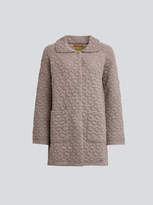 We liven up the style of this warm baby alpaca cardigan by applying a mix...