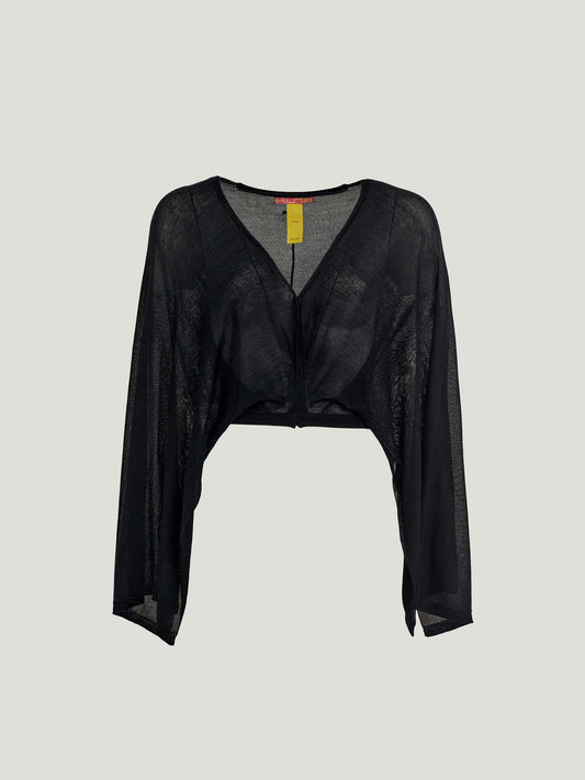 Wide-sleeved cardigan, made of 100% silk that also offers ideal comfort and freshness in any...