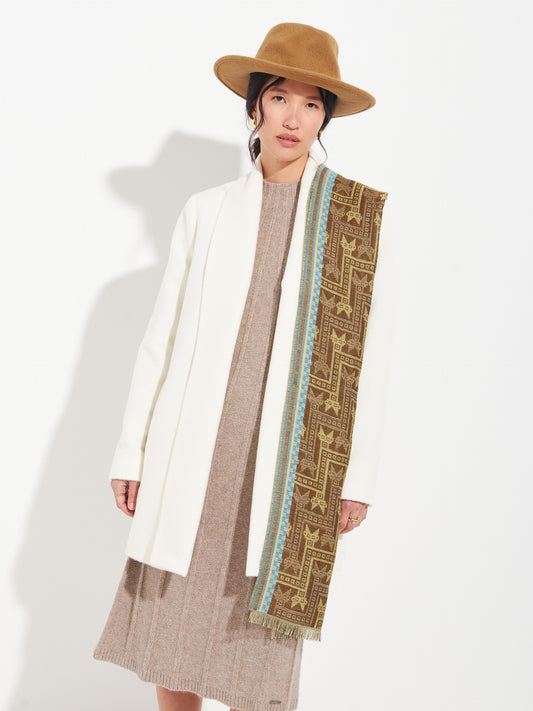 Manta Chimu 13 en tonalidad beige, elaborada en 100% baby alpaca con técnica Jacquard en...
