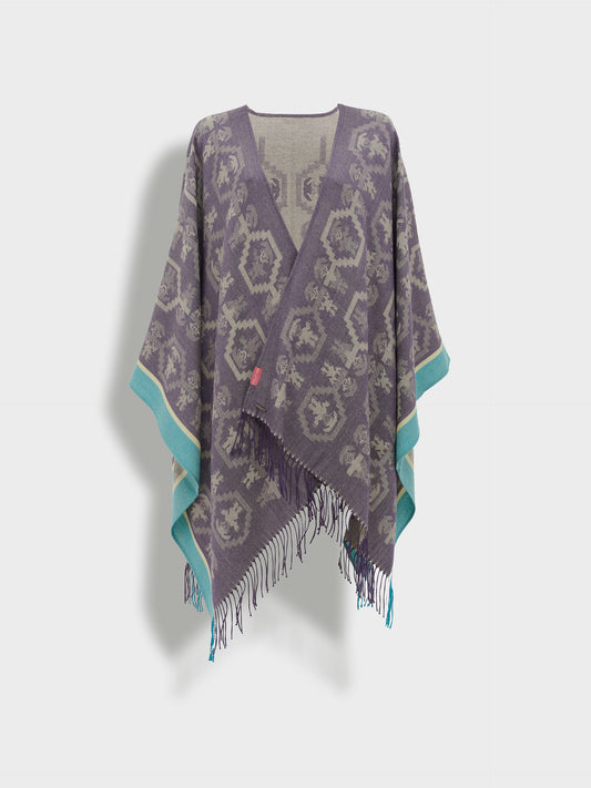 Poncho Chimu 12 en tonalidad morado, elaborado en 100% Alpaca Royal con técnica Jacquard satín...