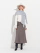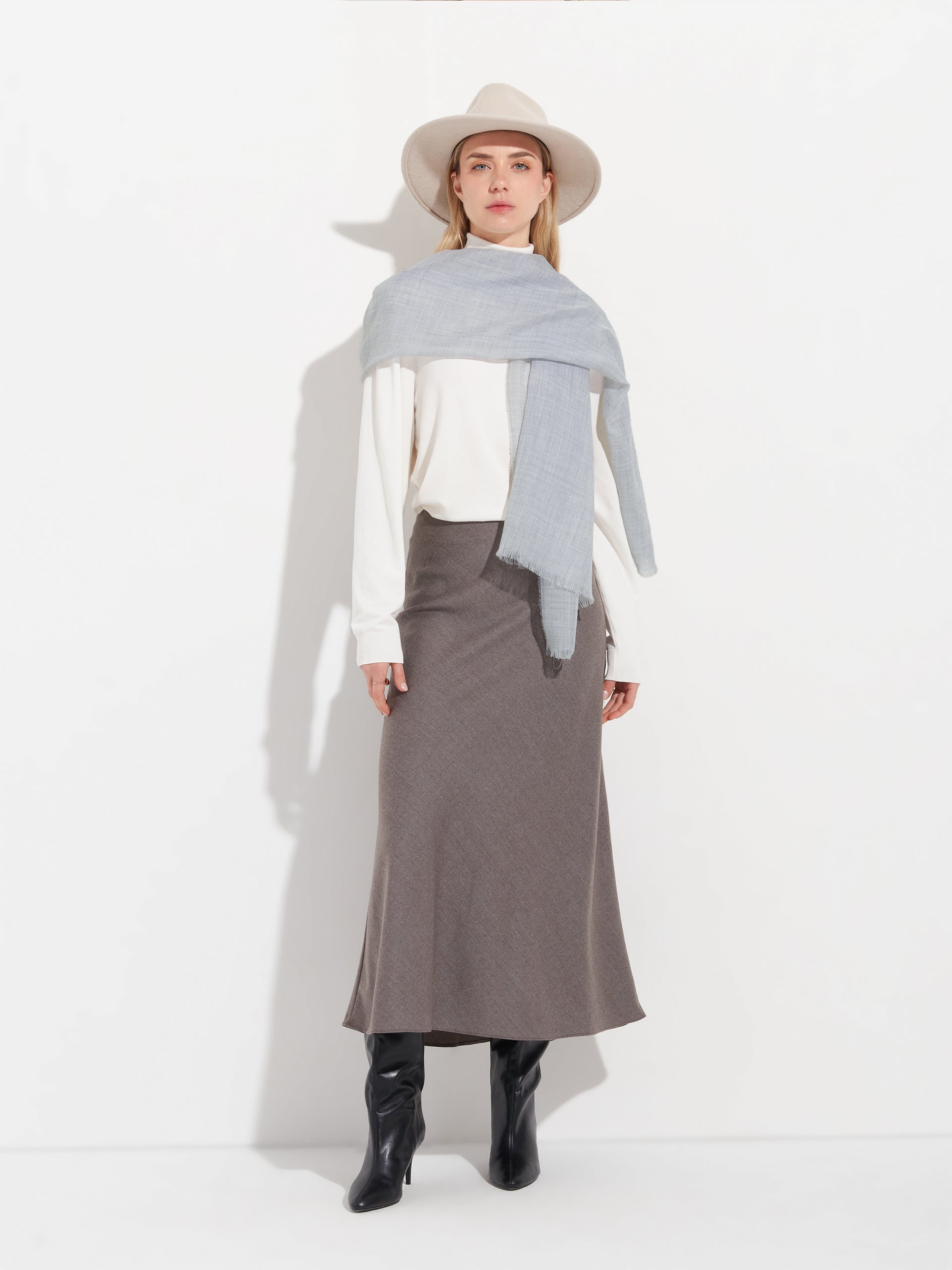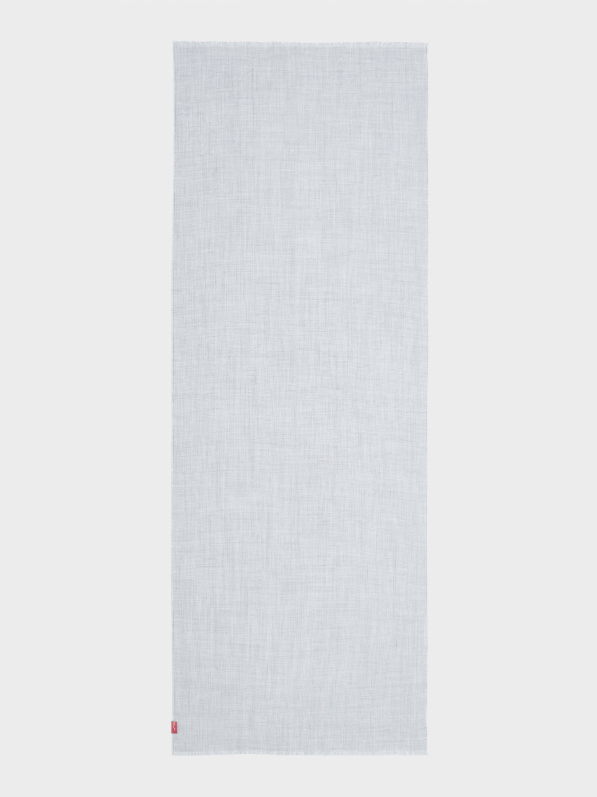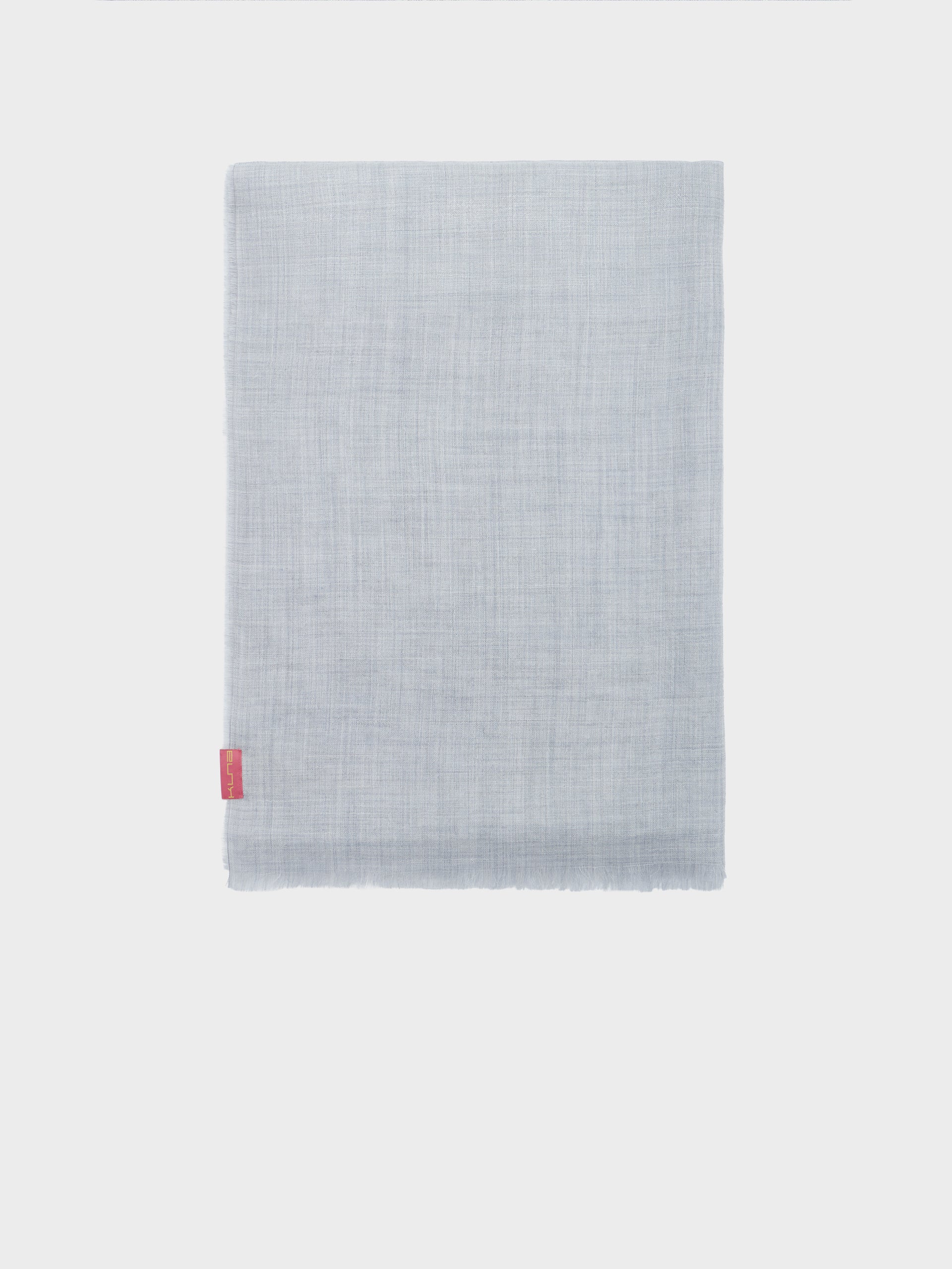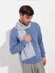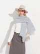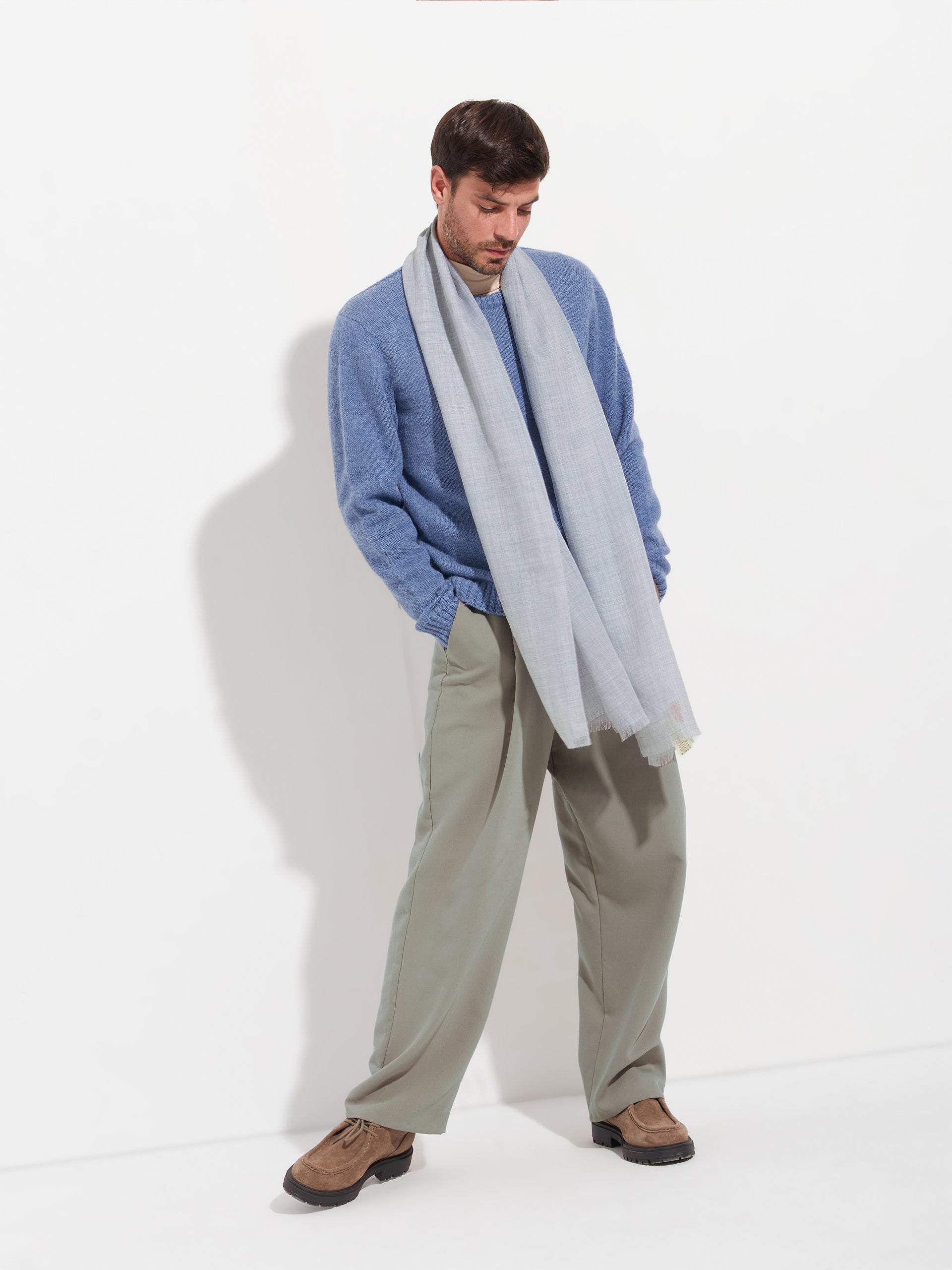 Estola Alondra en tonalidad azul, de color entero, presenta bordes con flecos finos. Confeccionada en baby alpaca y seda, combina ligereza y suavidad. | Material predominante: Baby Alpaca
