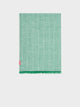 Estola Zoda en tonalidad verde, elaborada en una mezcla de baby alpaca, seda y lino. Presenta un diseño a cuadros en panamá y tafetán con acabado desflecado, que combina ligereza, frescura y estilo artesanal. | Material predominante: Baby Alpaca