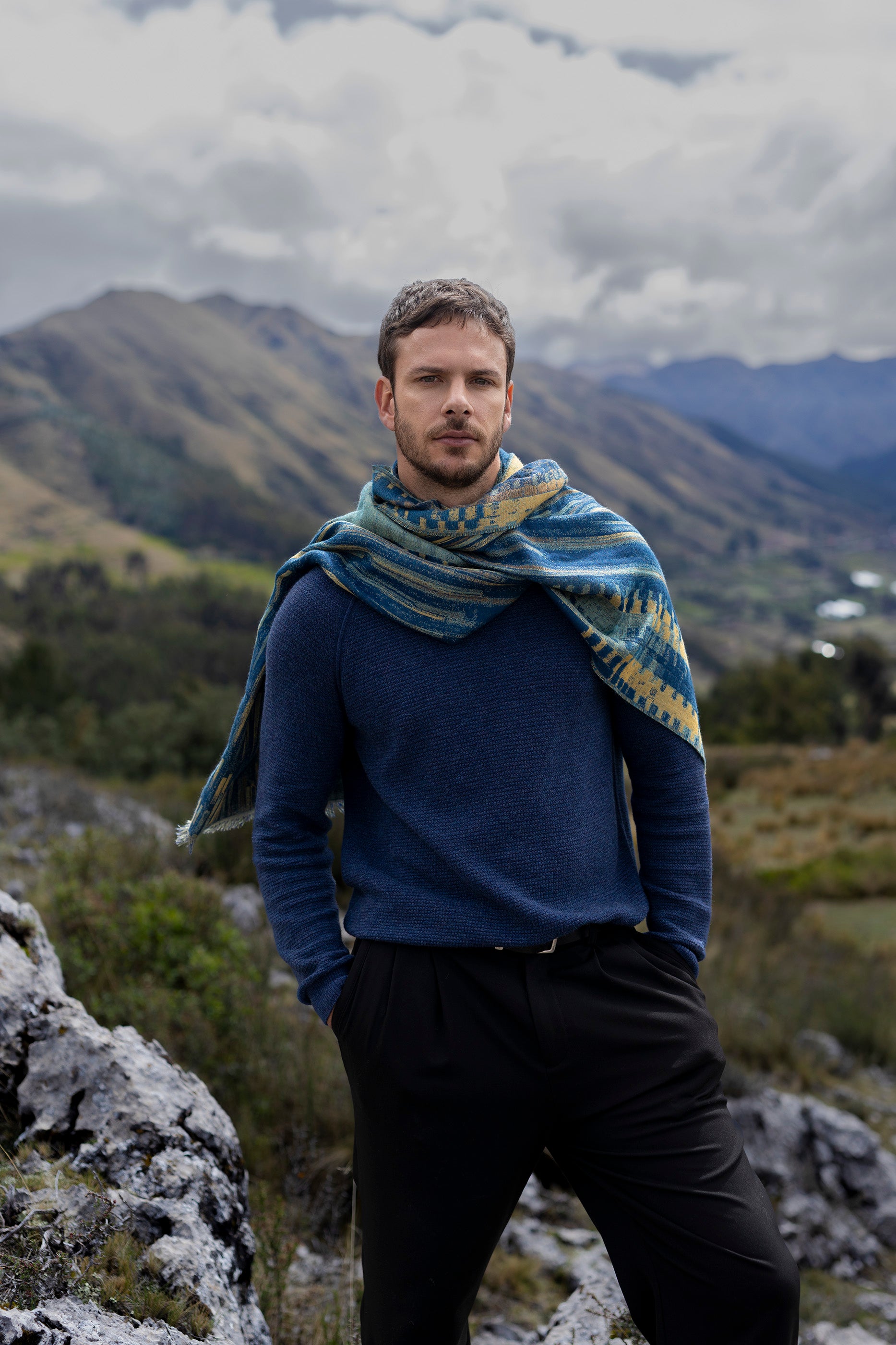 Estola Zulett en multicolor, presenta tejido jacquard con un diseño de líneas irregulares y bordes con flecos finos que completan su acabado. Confeccionada en baby alpaca y seda. | Material predominante: Baby Alpaca