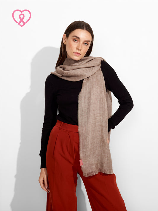 Estola Teaberry B en tonalidad marron, de color entero, presenta bordes con flecos finos que...