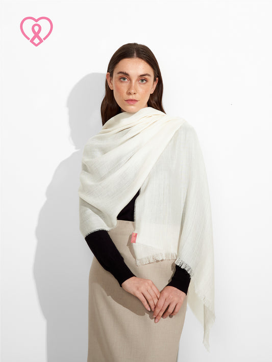 Estola Teaberry B en tonalidad ecru, de color entero, presenta bordes con flecos finos que...