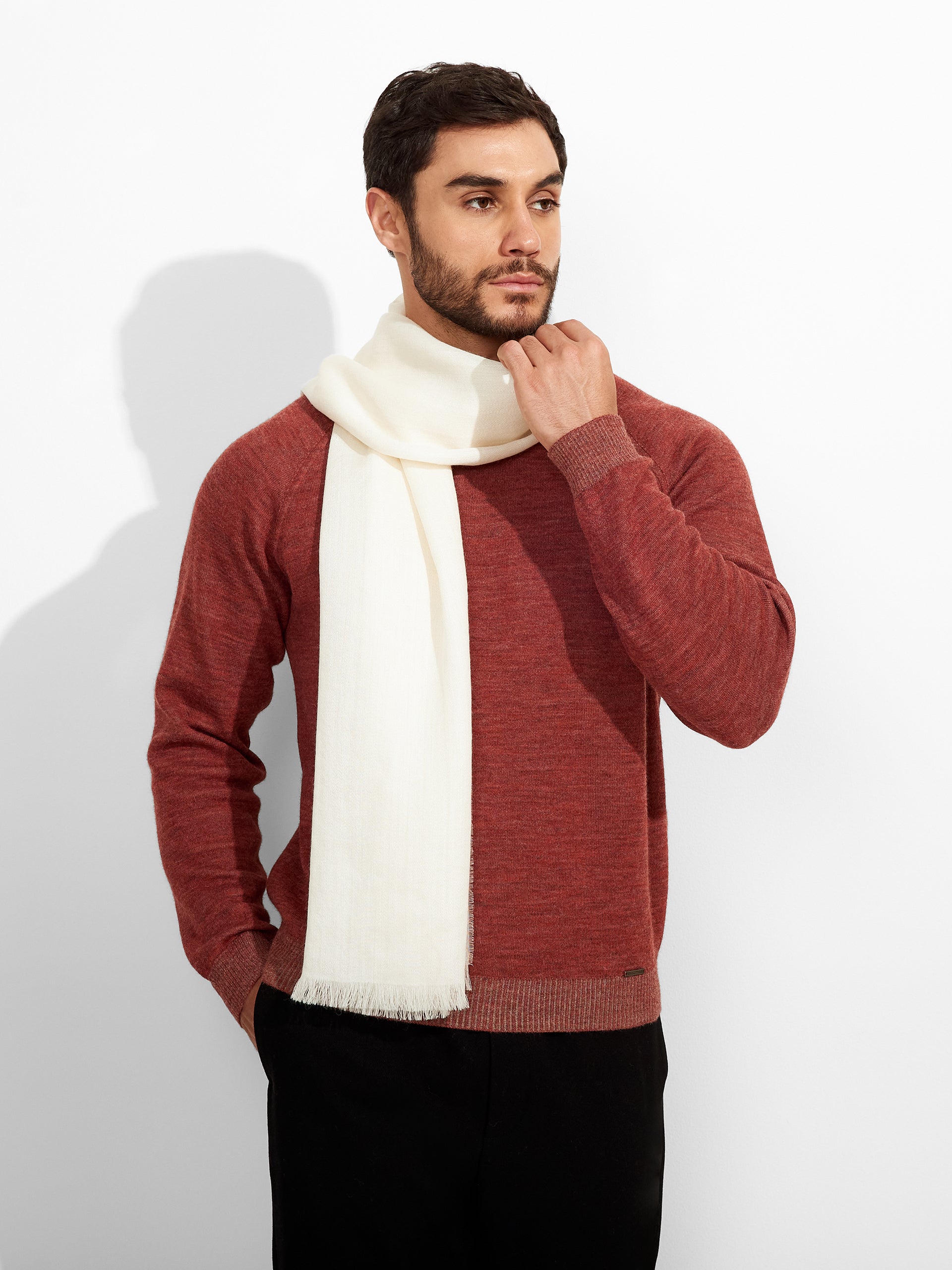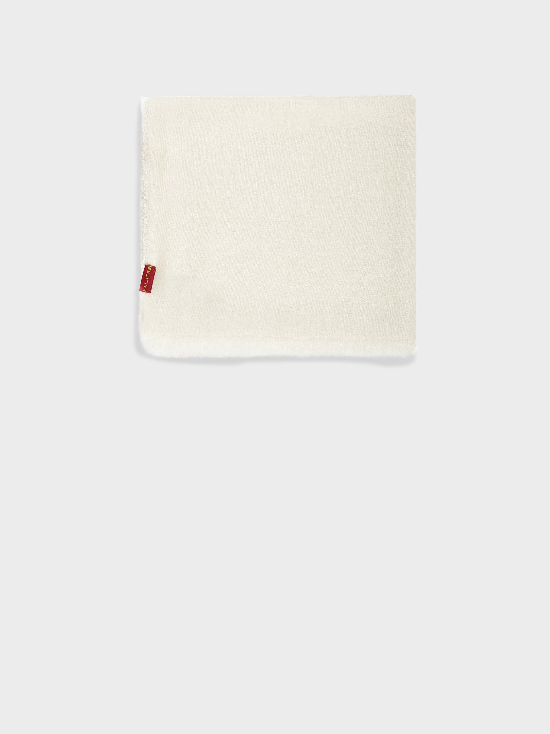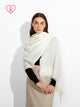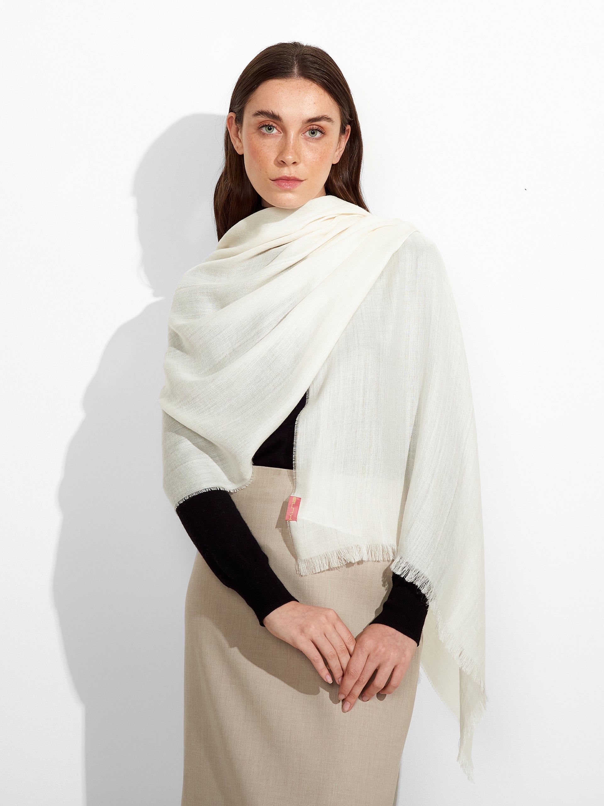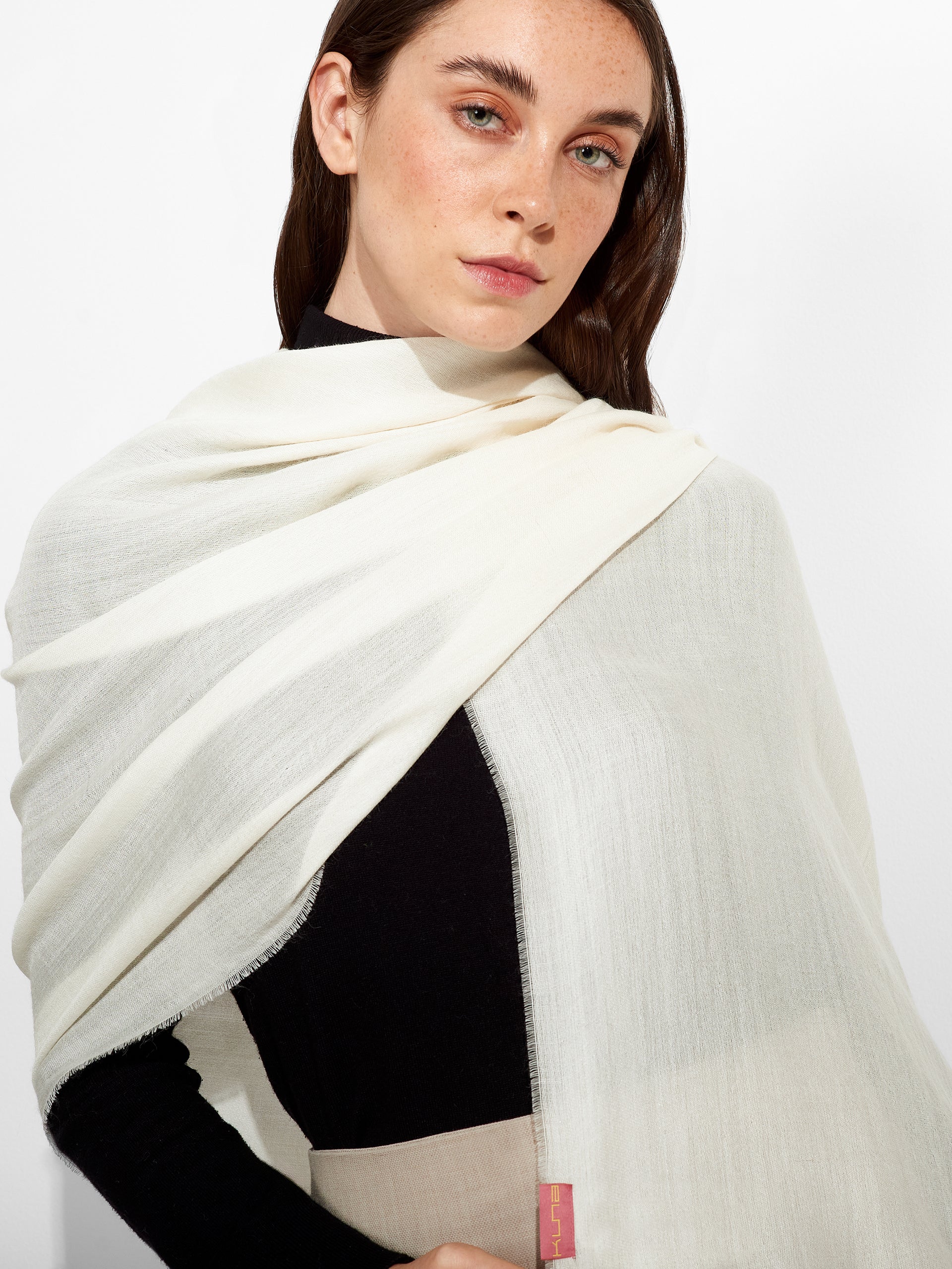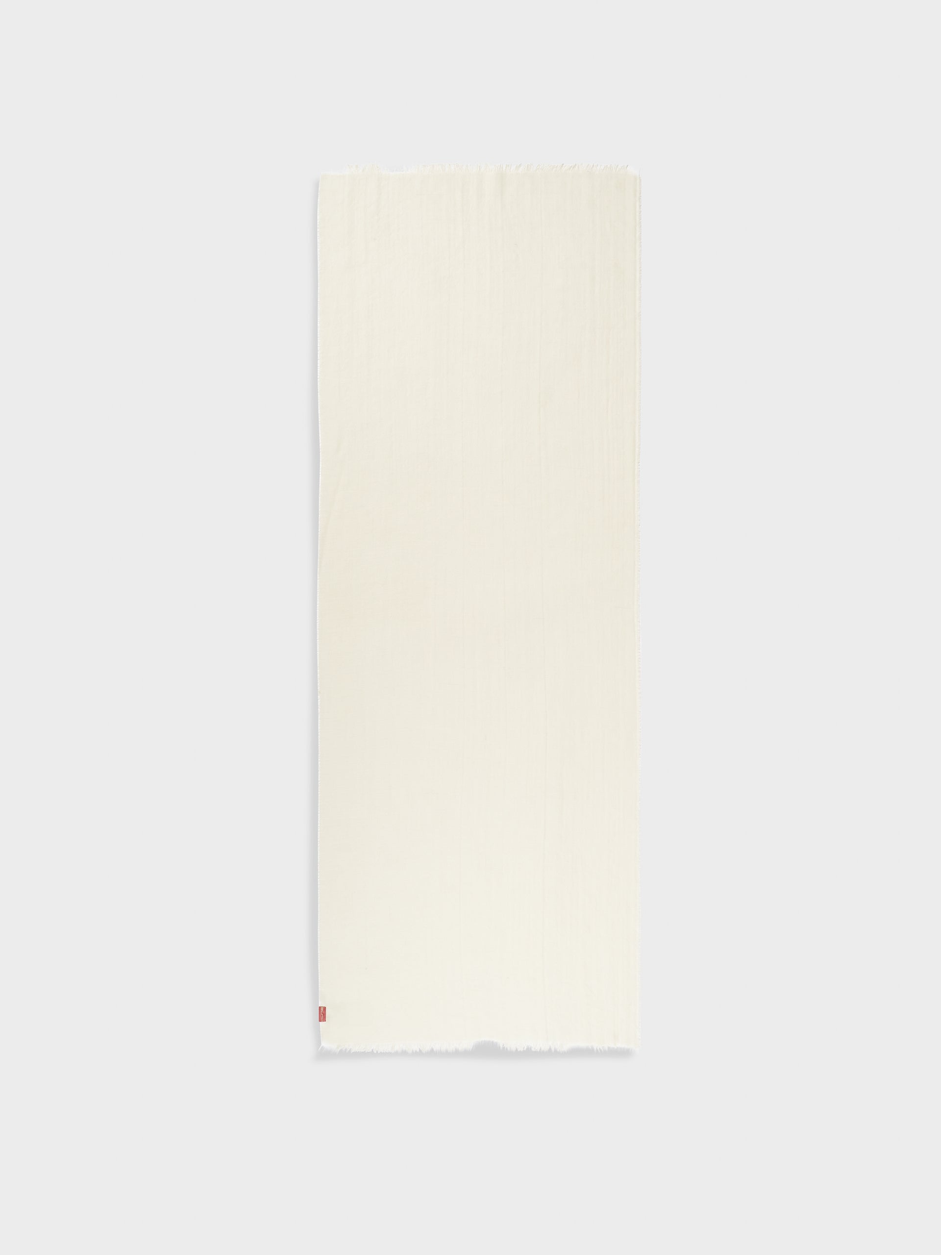Estola Teaberry B en tonalidad ecru, de color entero, presenta bordes con flecos finos que aportan un acabado delicado. Confeccionada en baby alpaca y seda eco. | Material predominante: Baby Alpaca